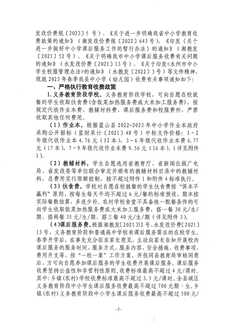 名称: 关于2023年春季全县中小学(幼儿园)教育收费 管理有关事项的通知