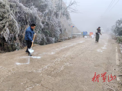 行动中,大家分工明确,协同作战。一组人员从乡政府出发在一端设立禁止通行的站牌,另一组从蓝山县县城出发利用铁锹、扫帚等工具,仔细清理路面积雪和薄冰,并在重点坡道、弯道、桥梁等易结冰危险路段,均匀抛洒融雪盐,加速冰雪融化,防止二次结冰。融冰后又小心翼翼地对道路两旁被冰雪压弯、压垂影响通行的树枝进行修剪、清理,及时排除高空坠枝风险,拓宽安全通行空间。尽管天气寒冷,作业环境艰苦,但全体人员干劲十足,忙碌的身影在冰雪的映衬下构成了一道温暖的风景线。