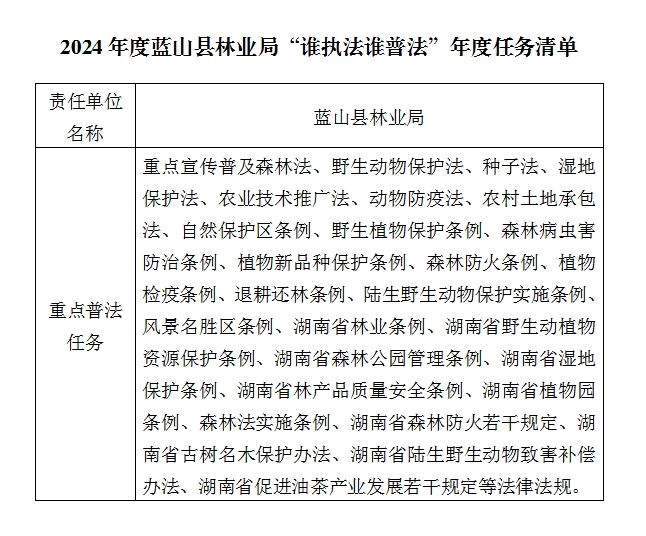 2024年度蓝山县林业局“谁执法谁普法”普法责任清单
