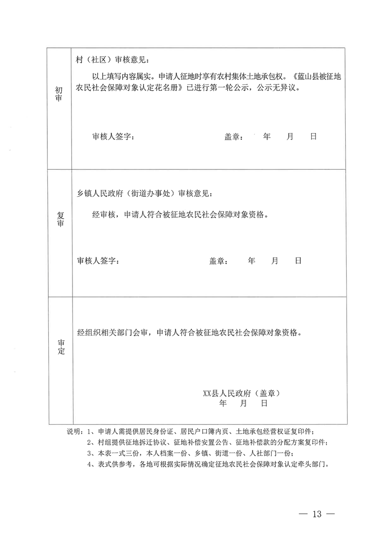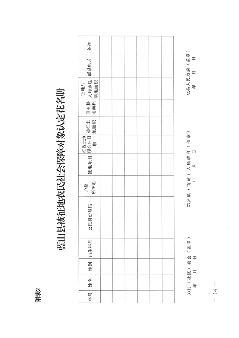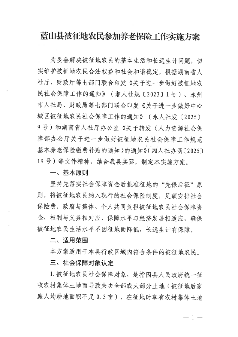 名称: 关于印发《蓝山县被征地农民参加养老保险工作实施方案》的通知