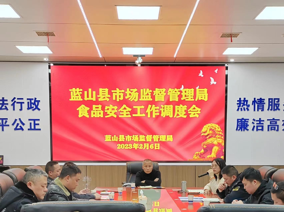 2月6日上午,蓝山县市场监督管理局召开2023年度食品安全工作调度会。会议对2022年食品安全工作进行了全面总结,特别是对全年监管工作中存在的问题进行了“体检式”剖析,并结合实际就今年的食品安全工作进行了全面部署。