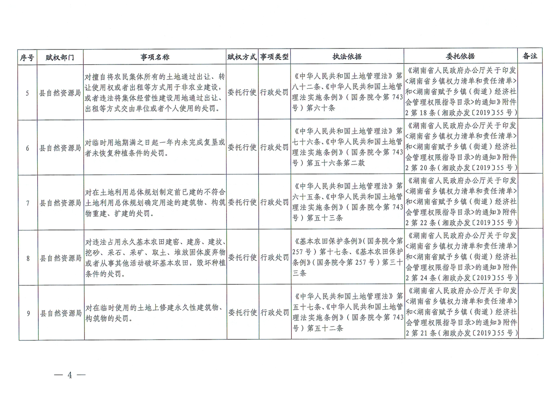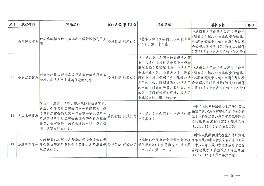 名称: 蓝山县人民政府办公室关于印发《蓝山县县直部门委托乡镇行政执法事项清单》的通知