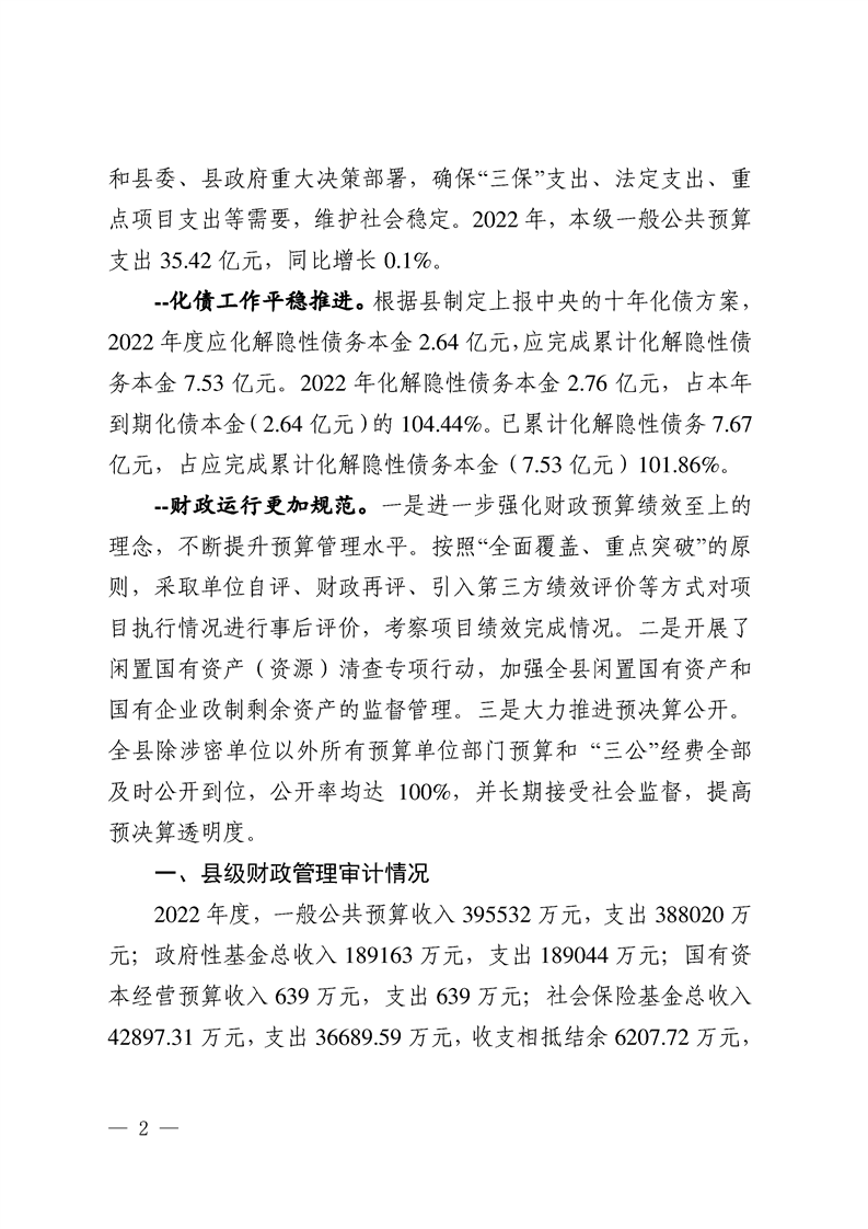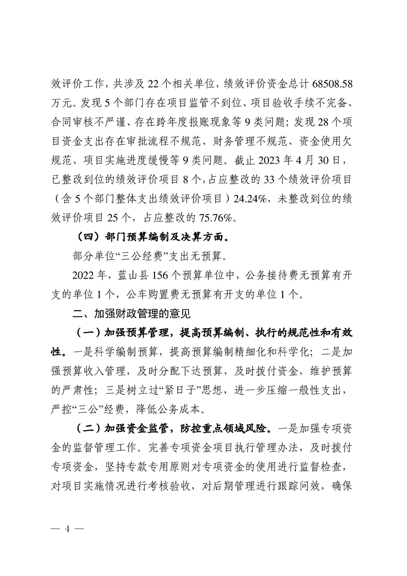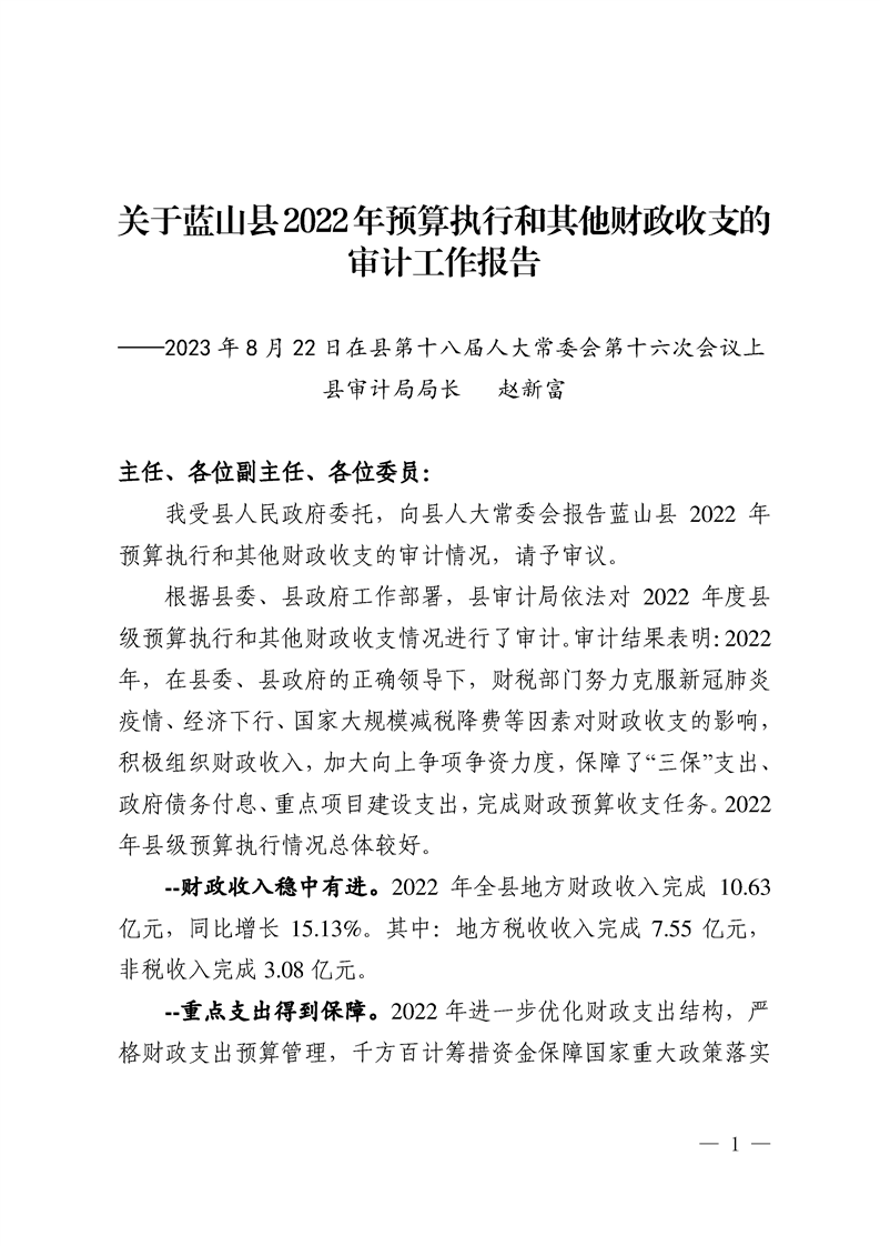 名称: 关于蓝山县2022年预算执行和其他财政收支的审计工作报告