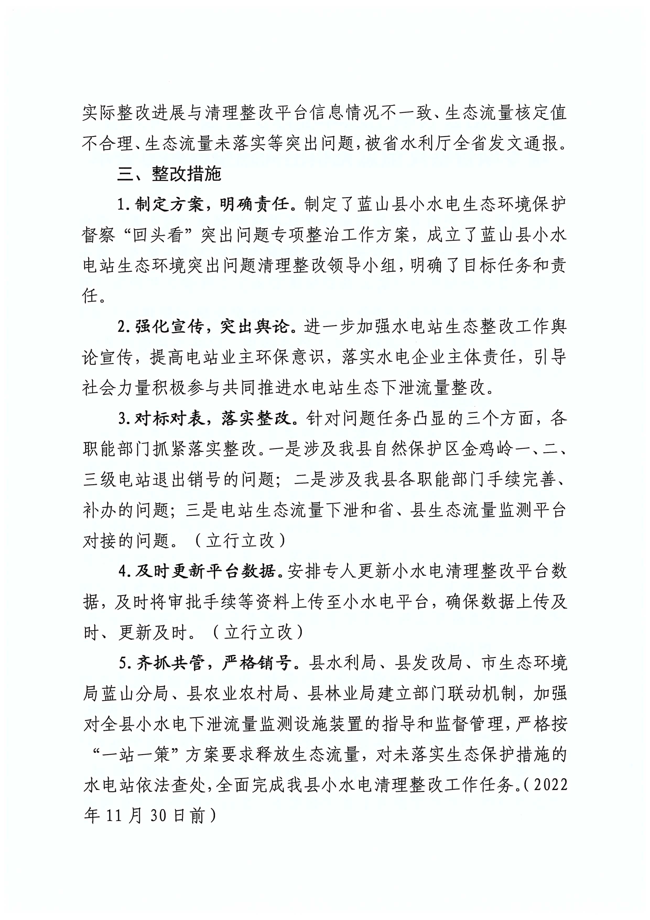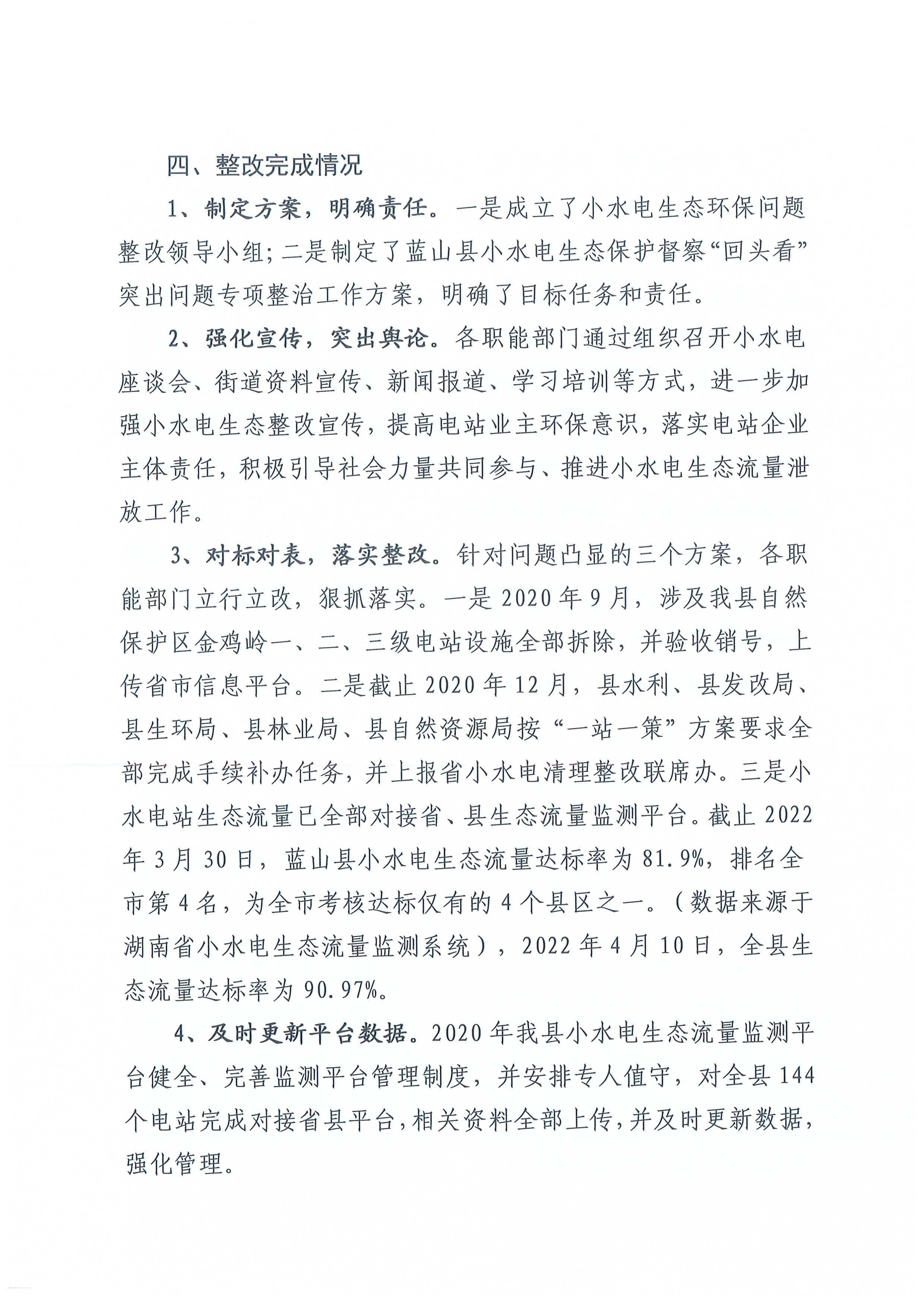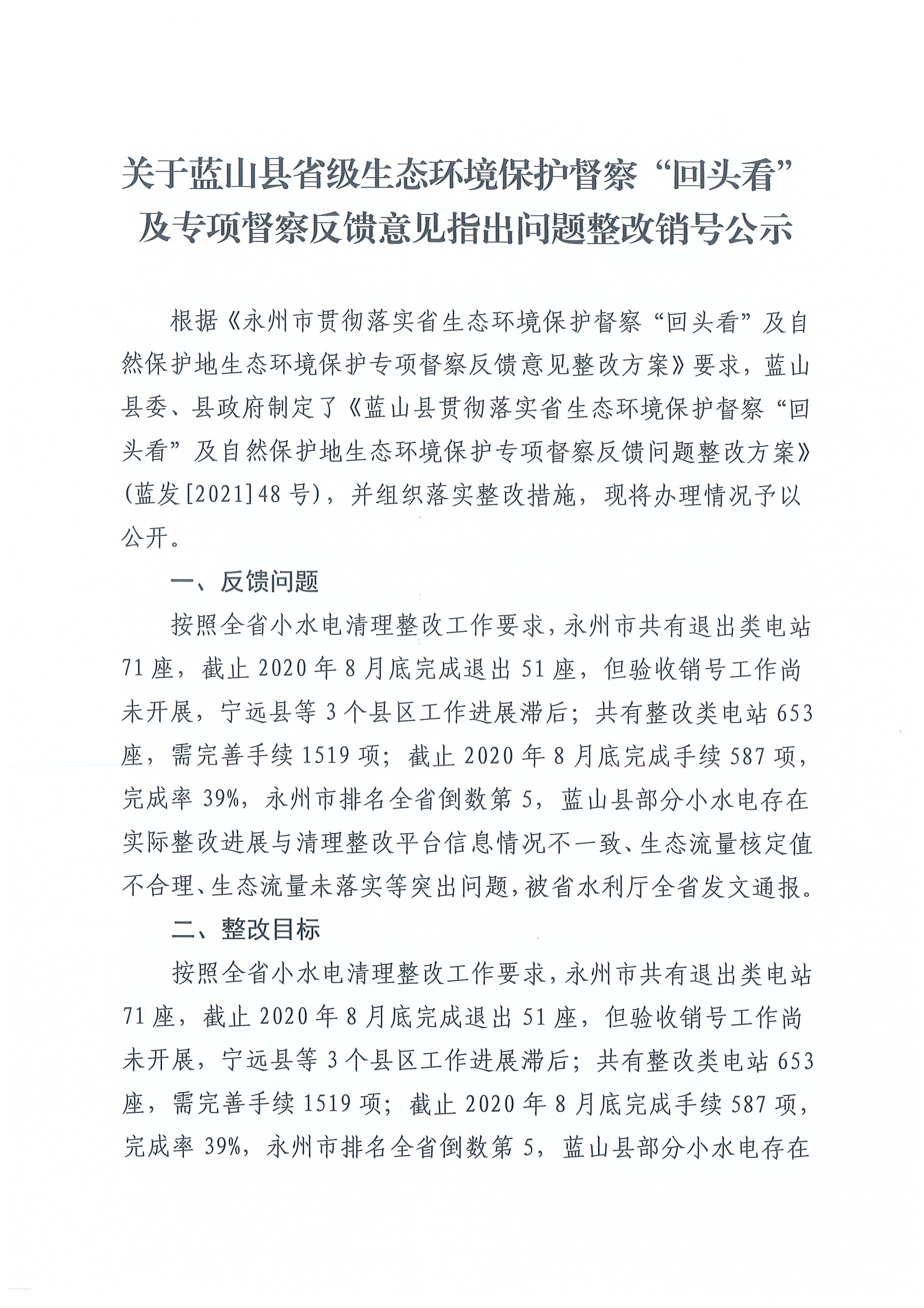 关于蓝山县省级生态环境保护督察“回头看”及专项督察反馈意见指出问题整改销号公示