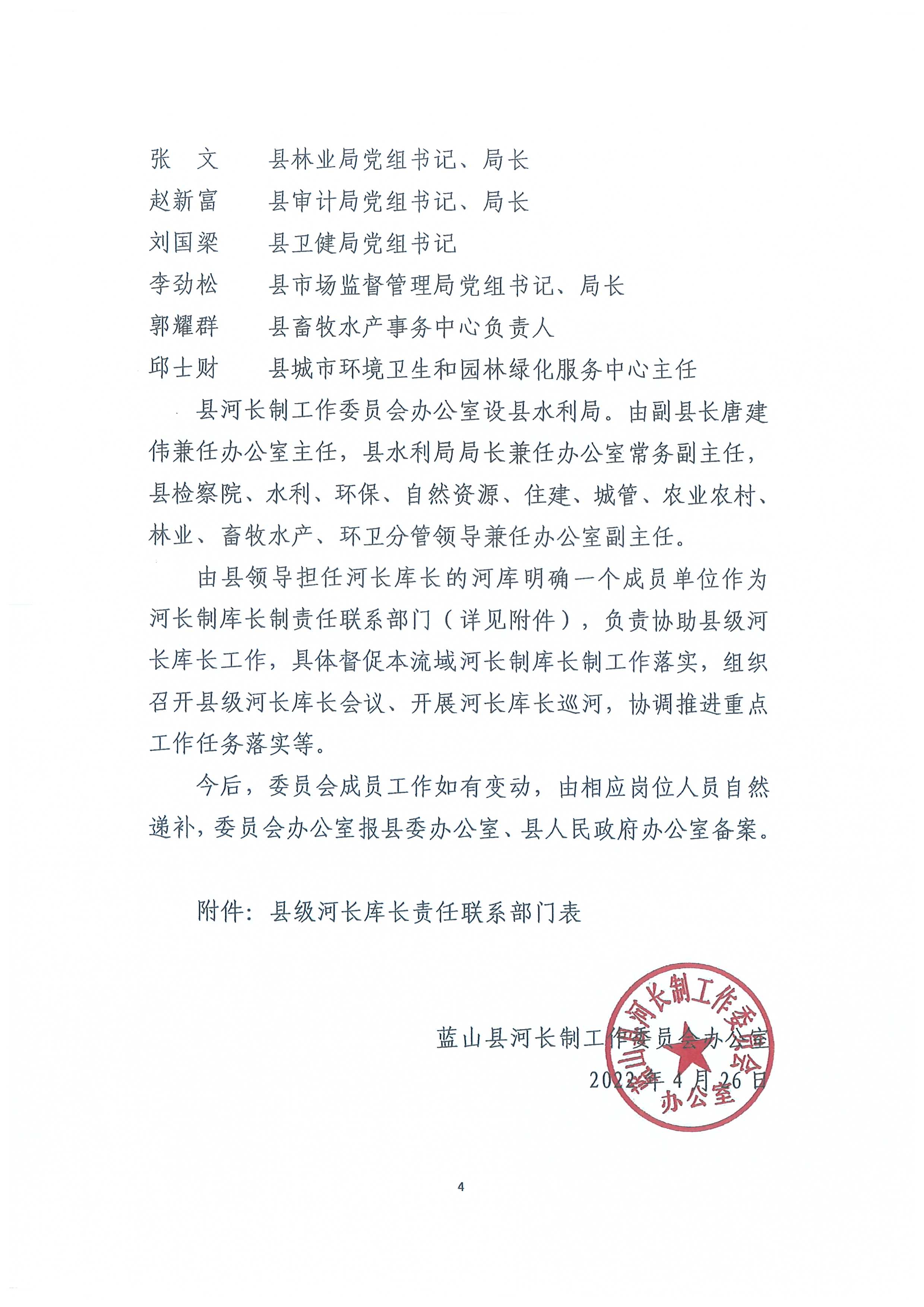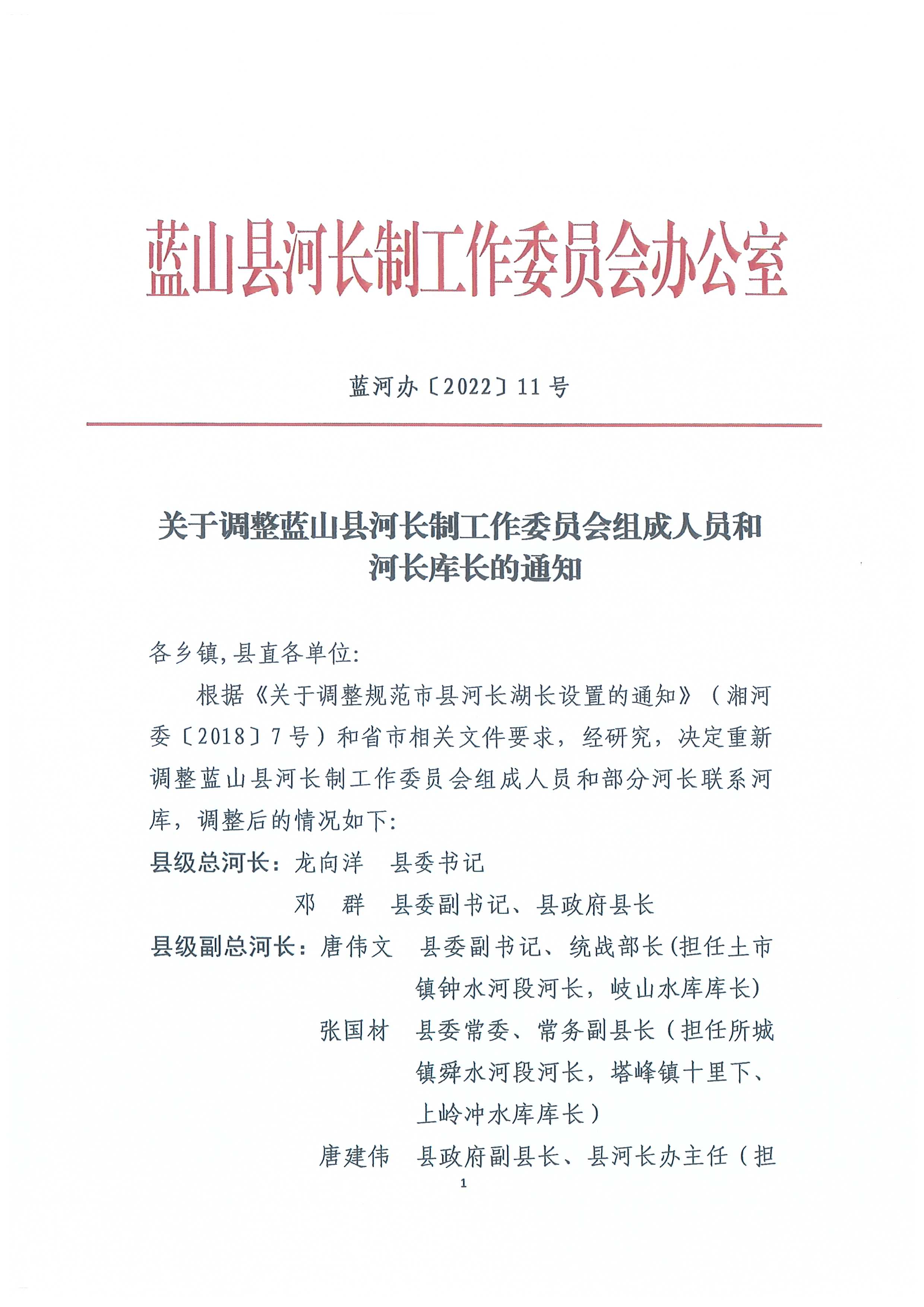 名称: 关于调整蓝山县河长制工作委员会组成人员和河长库长的通知