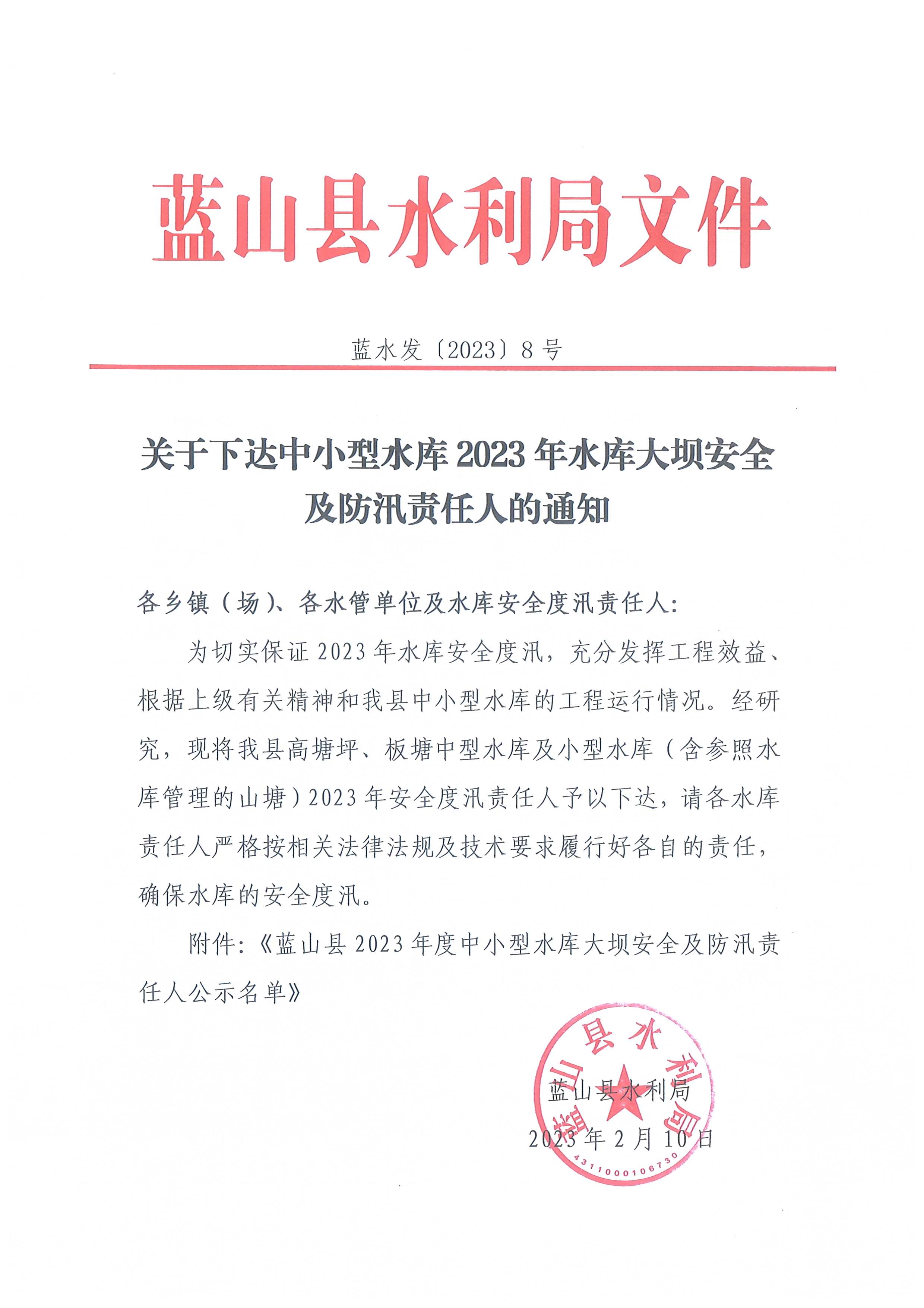 附件:蓝山县2023年度中小型水库大坝安全及防汛责任人公示名单