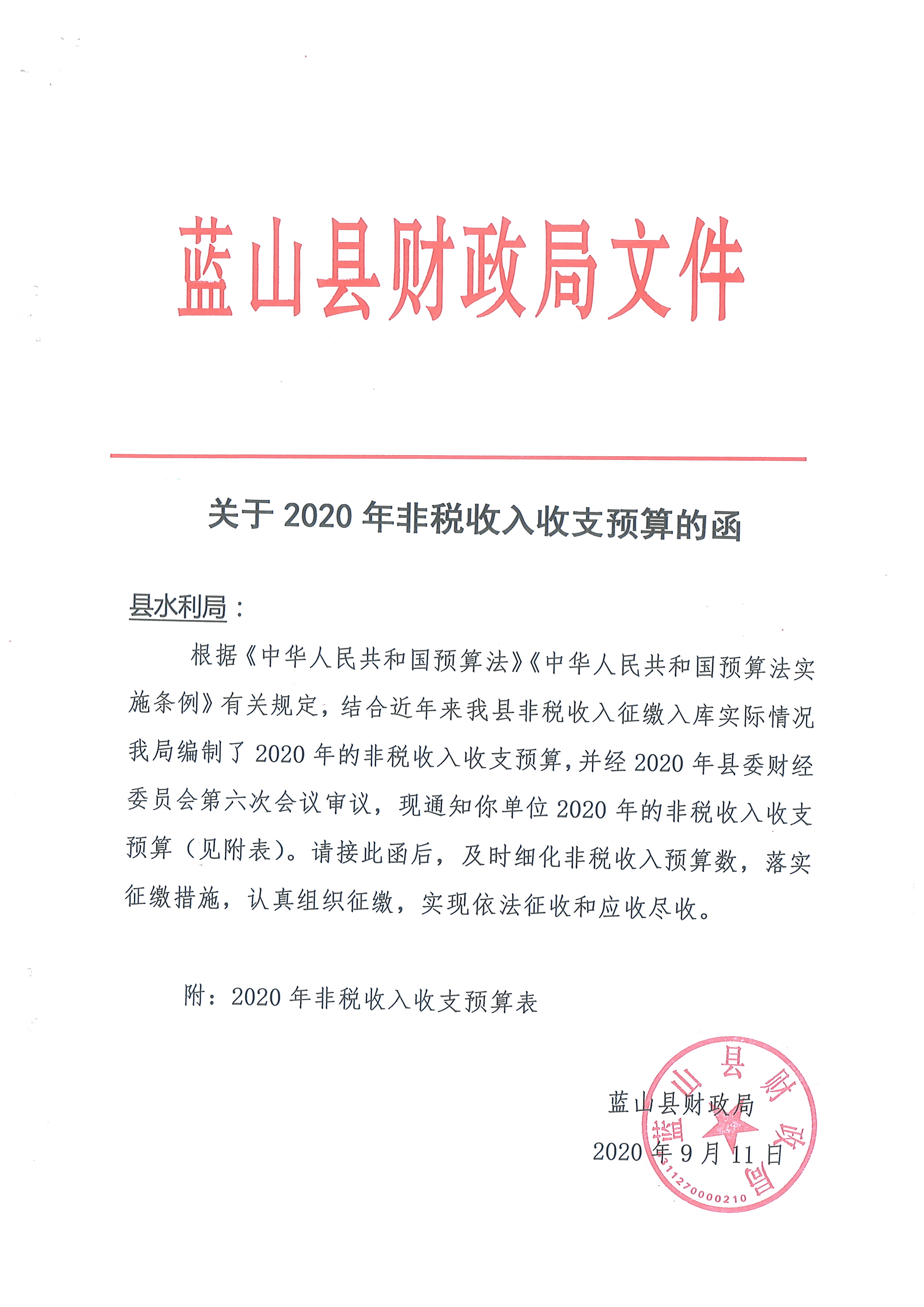 发文机关: 蓝山县水利局 发文日期: 2020-09-11