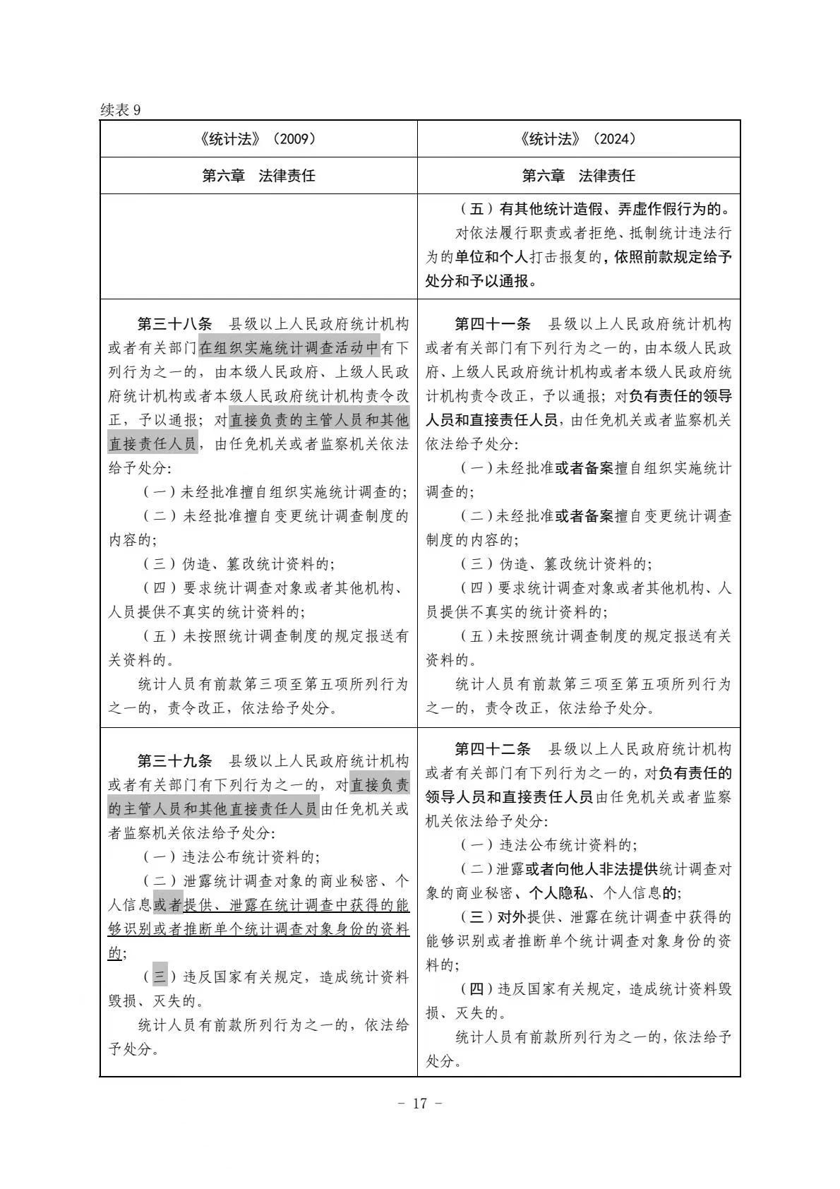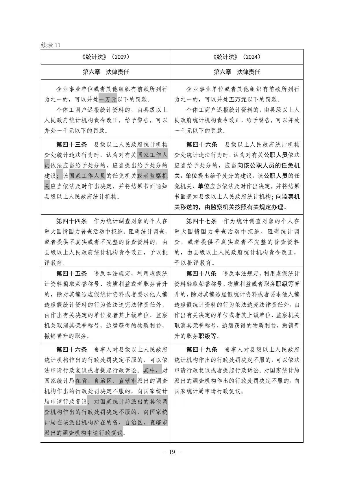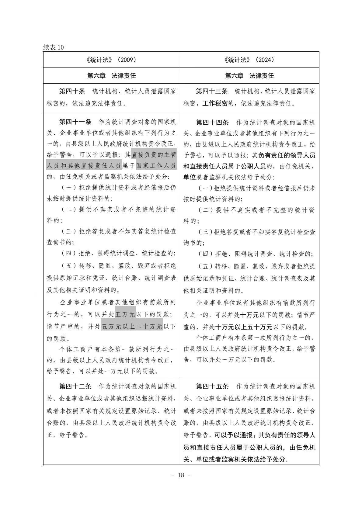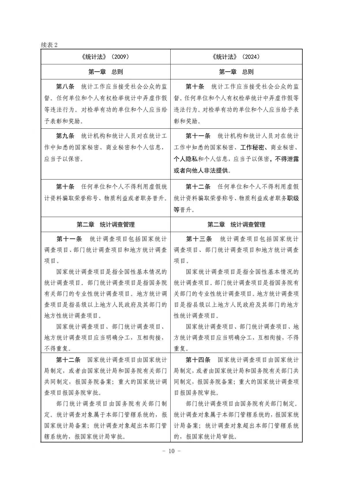 2024年9月13日,十四届全国人大常委会第十一次会议表决通过了《全国人民代表大会常务委员会关于修改〈中华人民共和国统计法〉的决定》,自公布之日起施行。 在保持现行统计法制度框架基本不变的基础上,此次统计法修改围绕强化防范和惩治统计造假责任、加强统计监督、提高统计科学性等方面,新增加3条、修改21条。 此次统计法修改坚持问题导向,对统计监督等统计基本职能予以充实,对统计调查、国民经济核算、统计资料管理和公布等统计基本制度予以补充完善,对统计造假等违法行为的法律责任予以强化,补齐法律制度短板弱项,将为从根本上解决一些长期困扰统计工作的深层次矛盾和问题、推动统计工作高质量发展提供坚实法治保障。