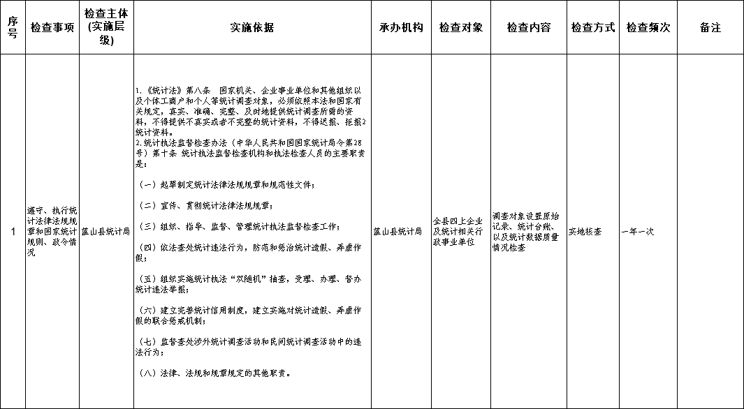 名称: 蓝山县统计局涉企行政检查事项清单