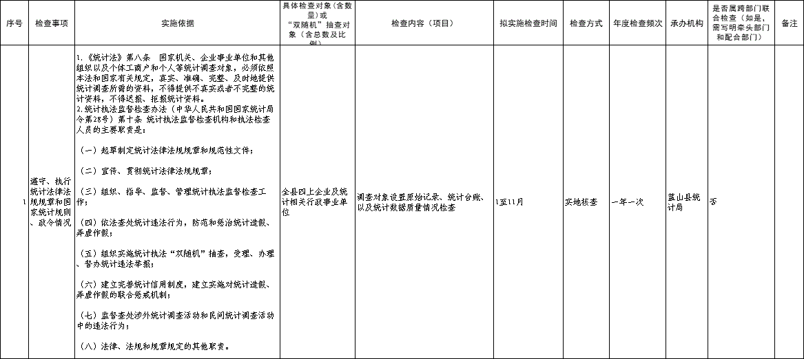 名称: 蓝山县统计局2025年度涉企行政检查计划