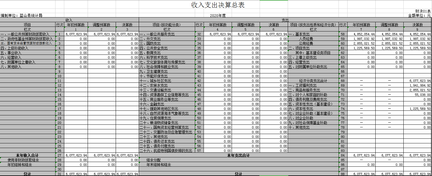 蓝山县统计局2020年决算报表