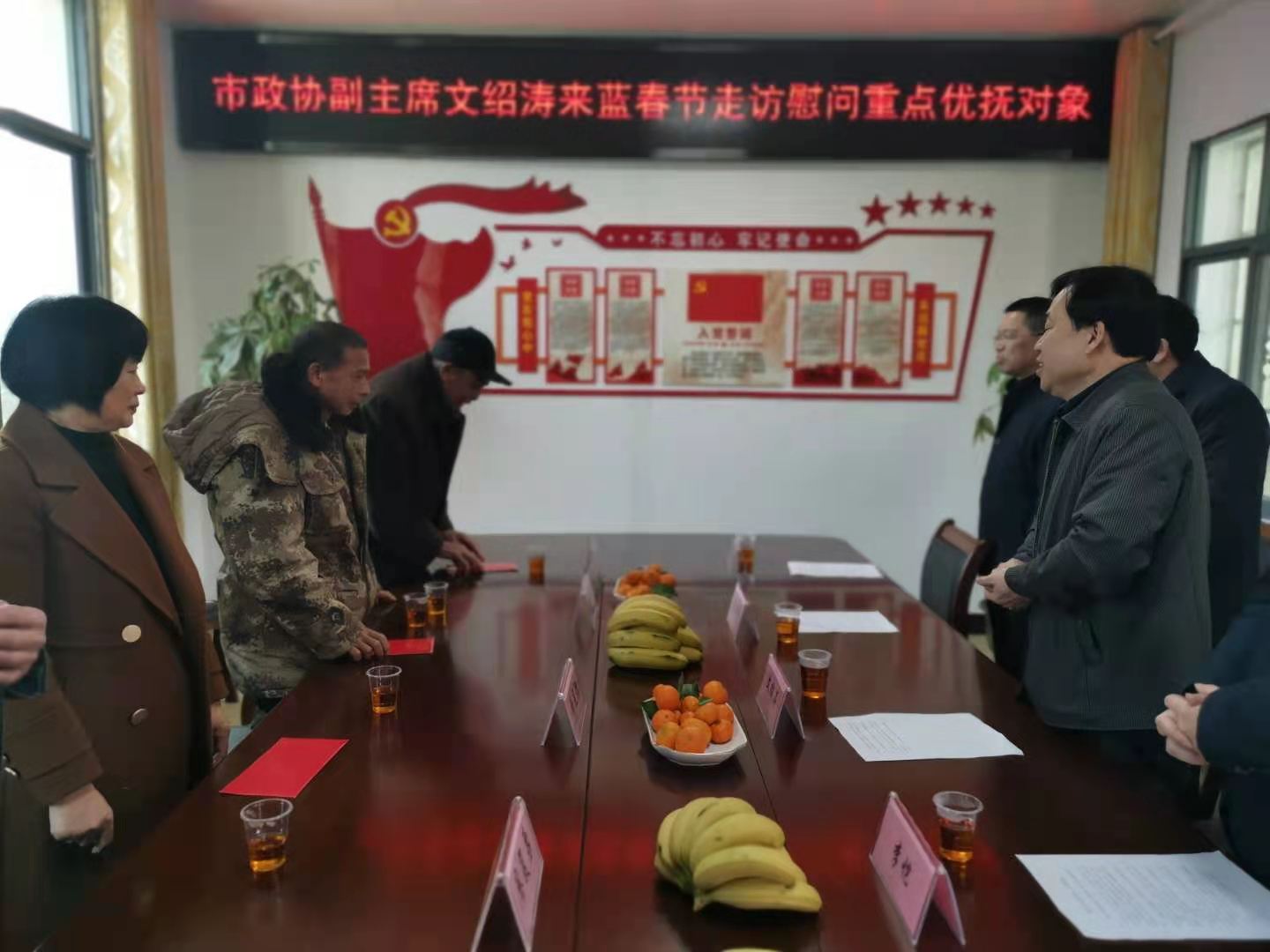 1月29日,蓝山县2021年春节烈军属、功臣模范退役军人代表慰问座谈会在蓝山县退役军人事务局举行,市政协副主席文绍涛代表市委市政府向全县烈军属、功臣模范、抗美援朝老战士、参战参试退役人员、伤残军人和其他优抚对象,致以亲切的节日问候和新春祝福,永州市军休所所长蒋卫东、县政协主席唐志雄等人陪同。