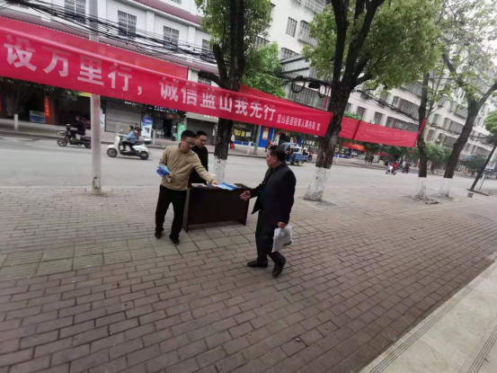 为贯彻落实县委县政府指示精神,积极配合行政审批局开展信用体系建设工作,推进蓝山县创信工作向前发展,营造良好的诚实守信社会氛围,2021年4月6日我县退役军人事务局在塔峰镇新民路开展“诚信建设万里行”活动。