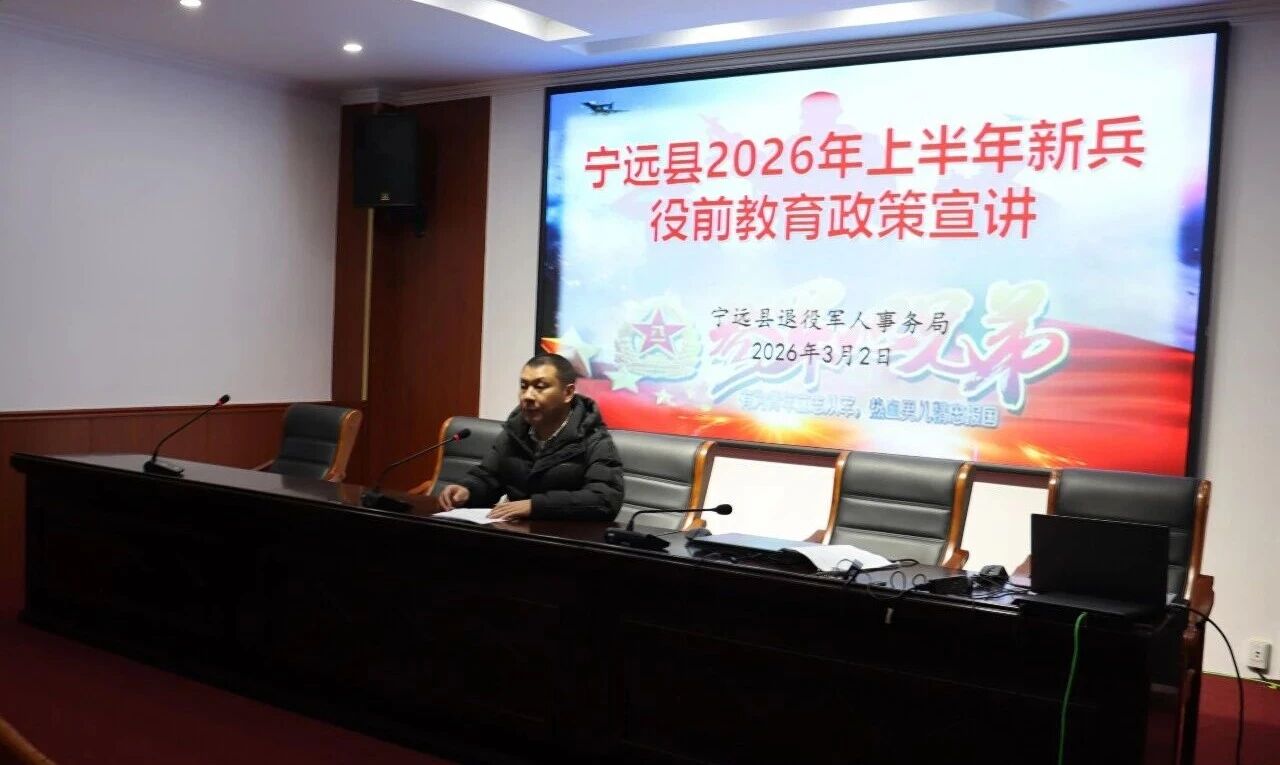 宁远县退役军人事务局拥军优抚股股长奉森(军旅生涯16年)为86名新兵开设“启蒙第一课”,采用“政策解读+情景模拟+互动答疑”模式,帮助新兵提前适应军营生活。