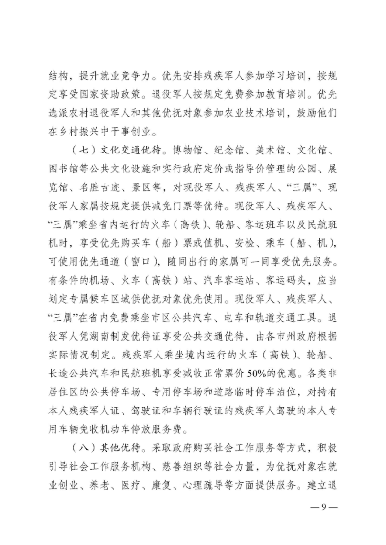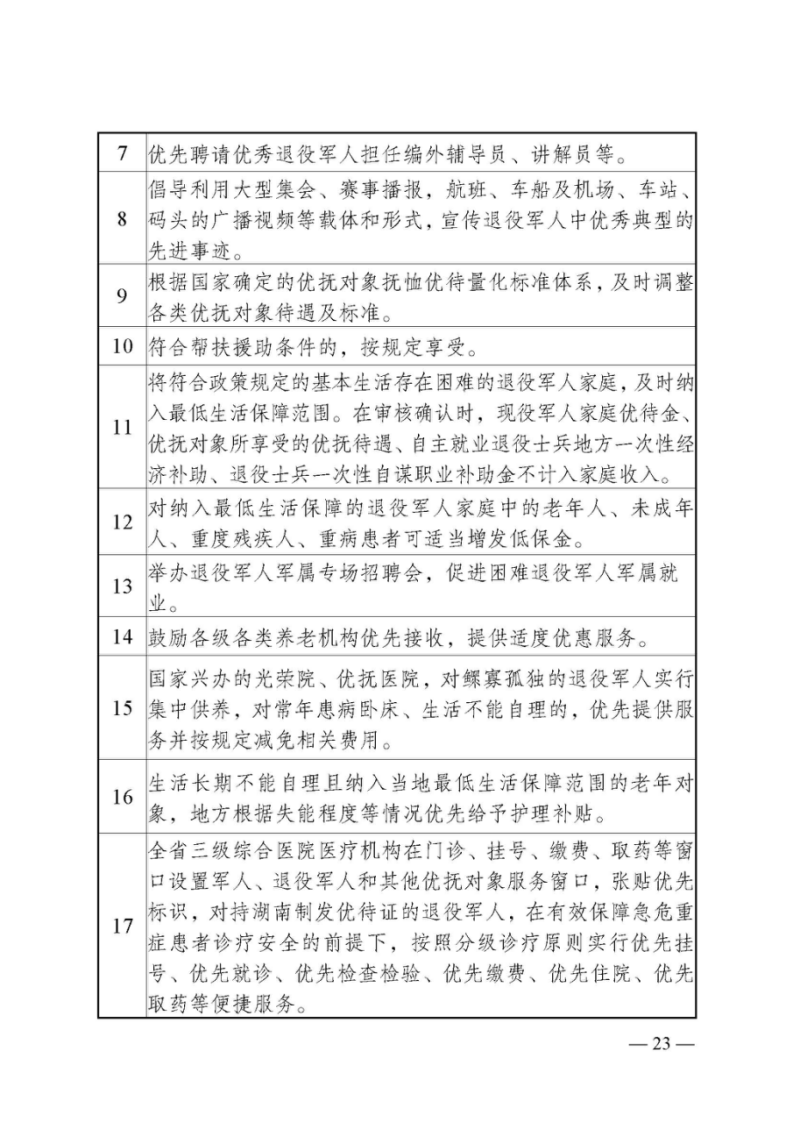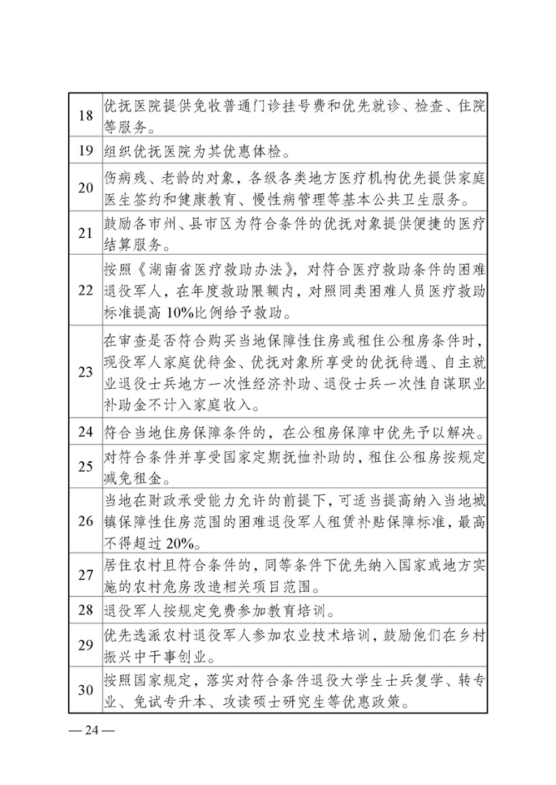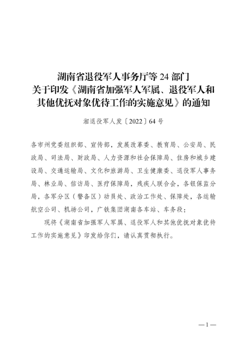 湖南省退役军人事务厅等24部门关于印发《湖南省加强军人军属、退役军人和其他优抚对象优待工作的实施意见》的通知