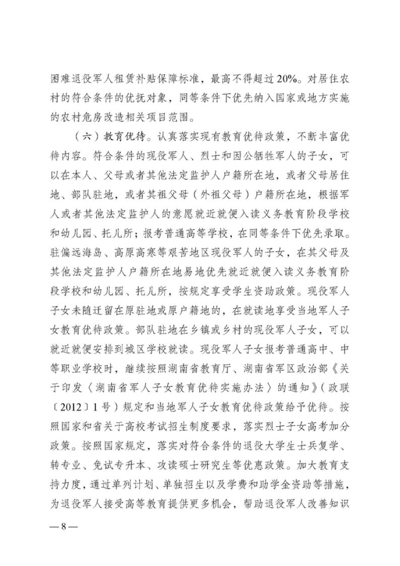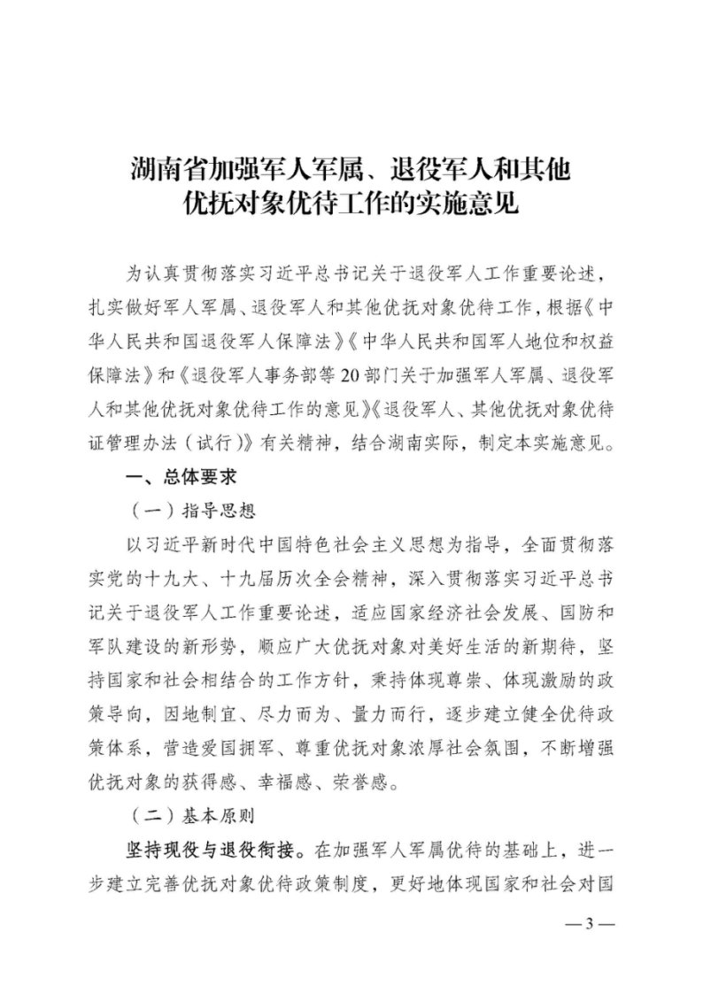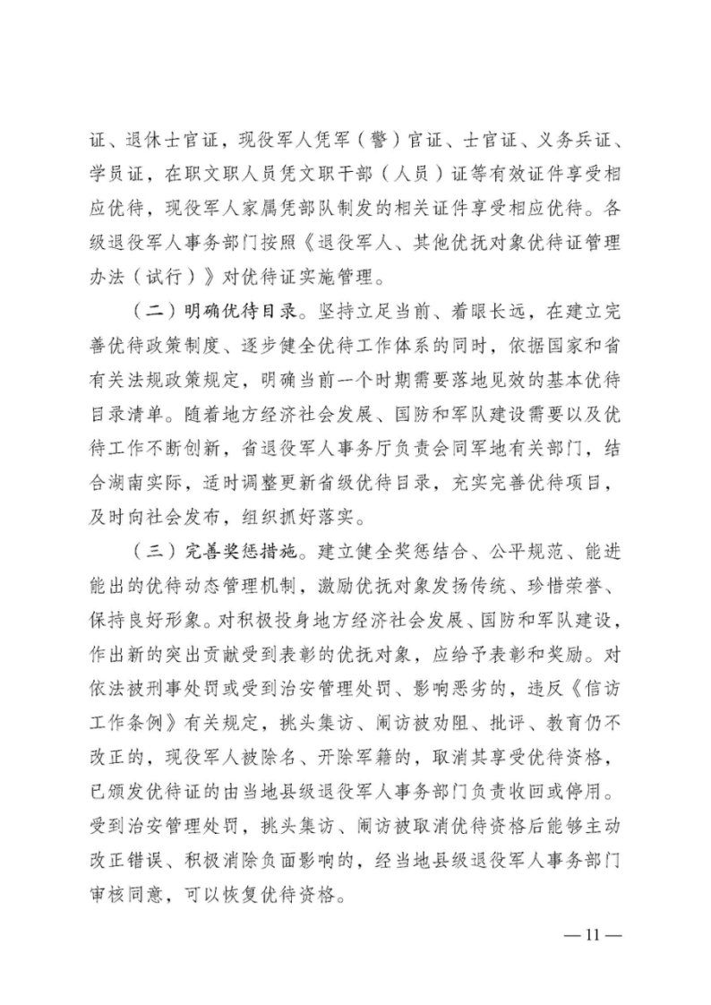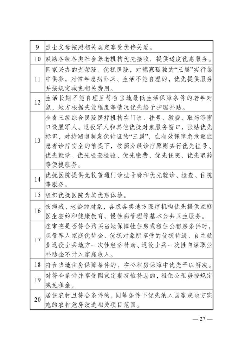 名称: 湖南省退役军人事务厅等24部门关于印发《湖南省加强军人军属、退役军人和其他优抚对象优待工作的实施意见》的通知