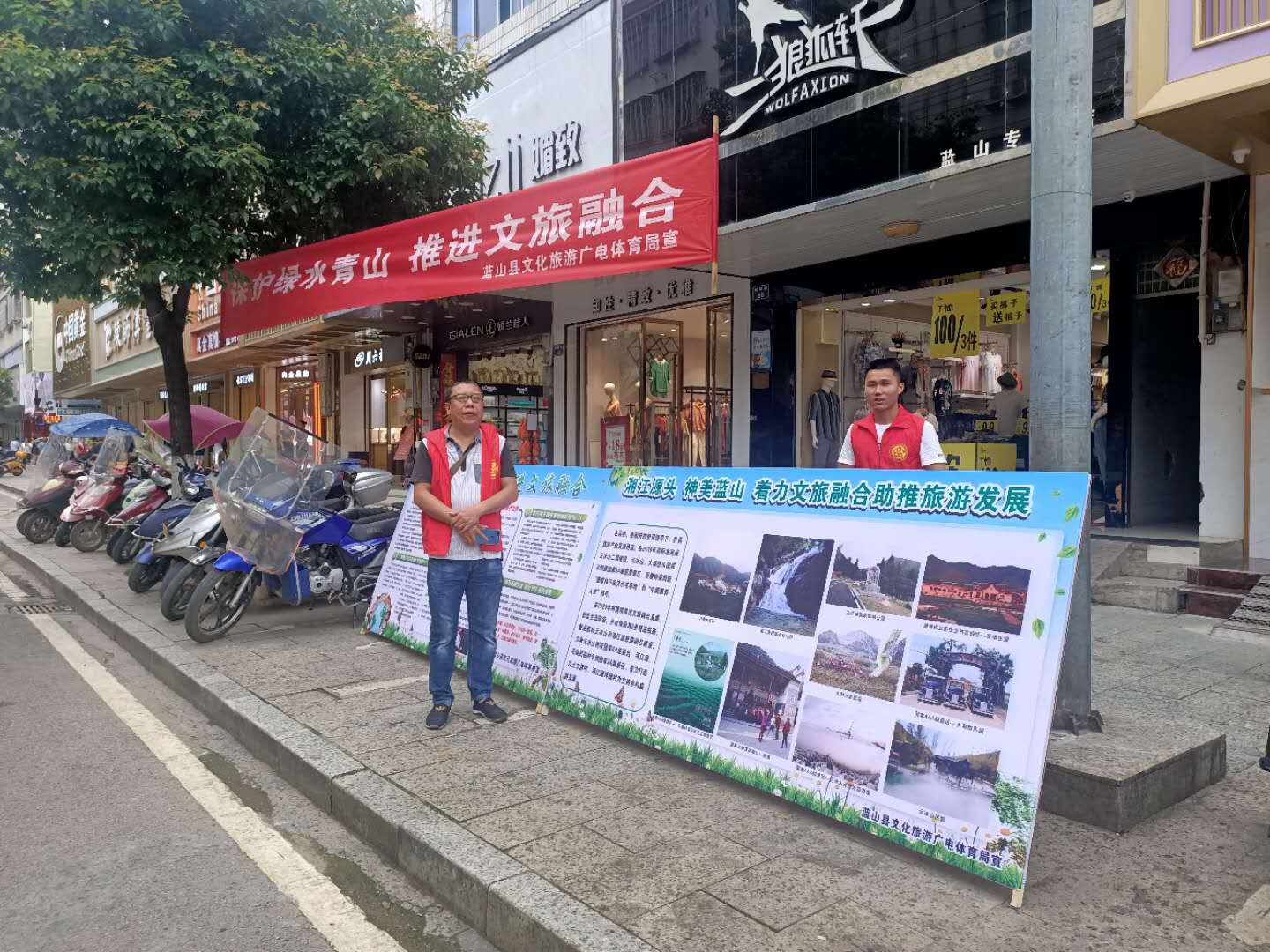 (作者:黄泽文) 6月5日,上午8时,蓝山县以创建公共文化服务体系示范区为契机,蓝山县文化旅游广电体育局、文化馆的文化志愿者们展开主题为“保护绿水青山,推进文旅融合”的宣传活动。