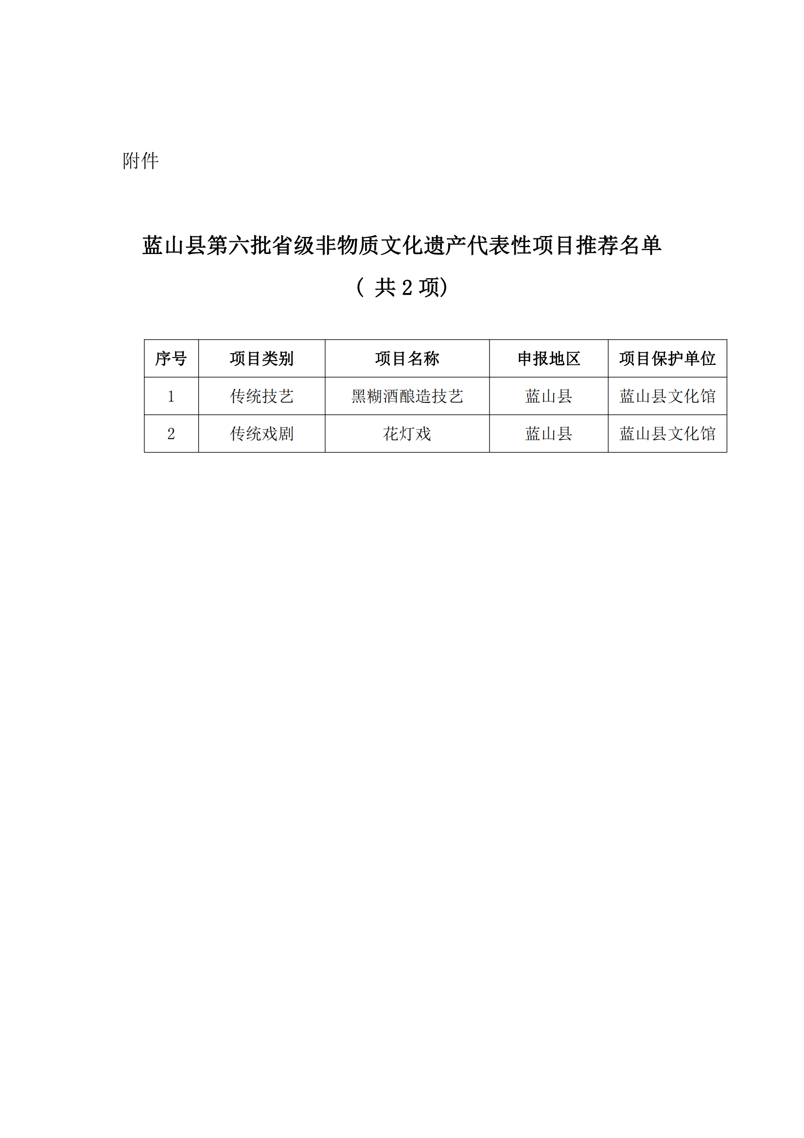 为进一步加强省级非物质遗产代表性项目名录建设,根据省文化和旅游厅《关于申报第六批省级非物质文化遗产代表性项目的通知》(湘文旅非遗〔2023〕38号)文件要求,和永州市文化旅游广电体育局《申报第六批省级非物质文化遗产代表性项目的通知》(永文旅广体字〔2023〕25号)文件要求,蓝山县文化旅游广电体育局组织开展省级非物质文化遗产代表性项目申报推荐工作,经资格审查、专家评审等程序,提出第六批省级非物质文化遗产代表性项目推荐名单(共2项,见附件),现将第六批省级非物质文化遗产代表性项目推荐名单向社会公示,公示期2023年5月8日-5月19日。在公示期间内若有异议相关人员可通过来函、来电等方式,向蓝山县文化旅游广电体育局反映,申诉材料须以书面形式呈递,逾期一律不受理。