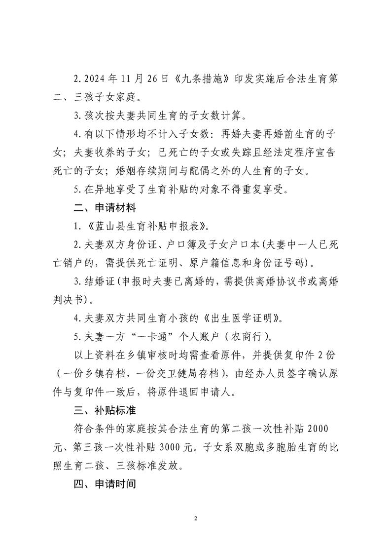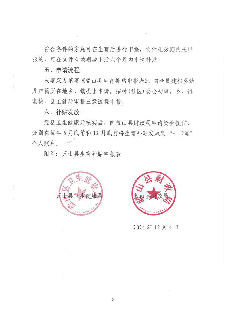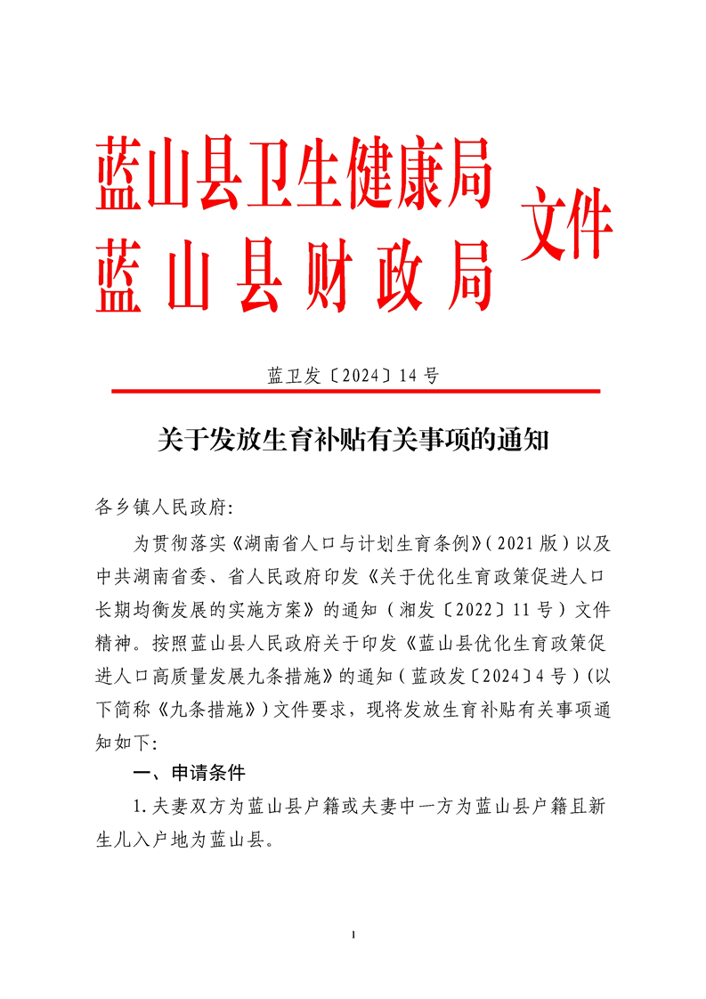名称: 蓝山县关于发放生育补贴有关事项的通知