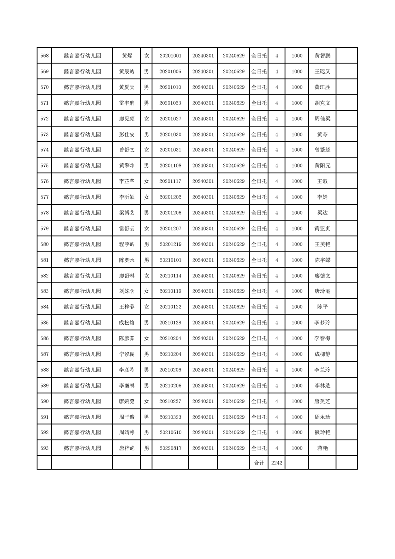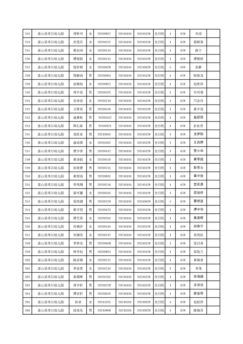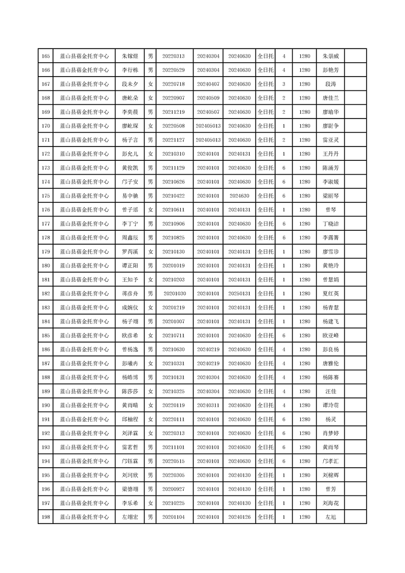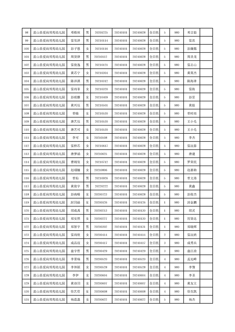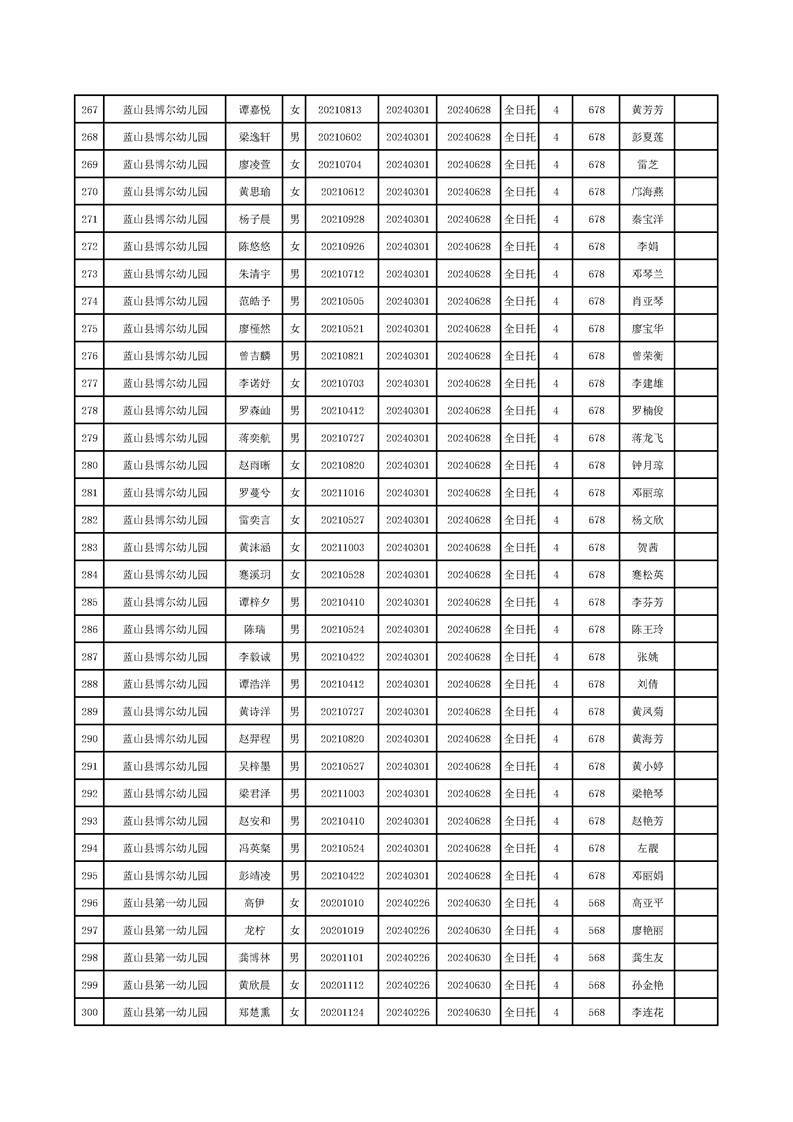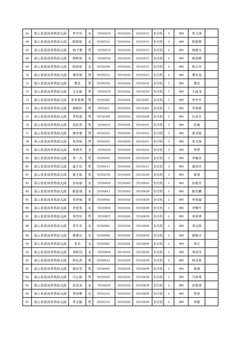 蓝山县2024年1-6月份普惠性托位在托婴幼儿花名册