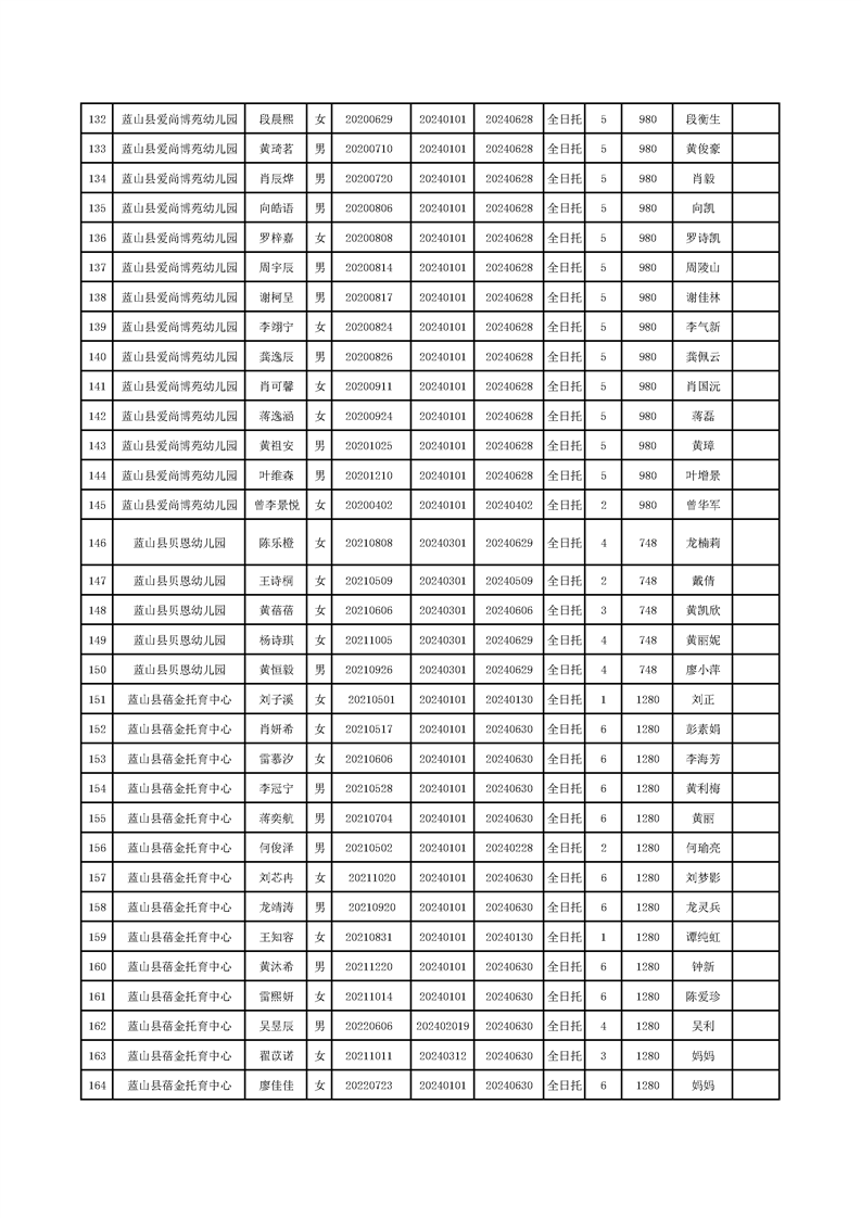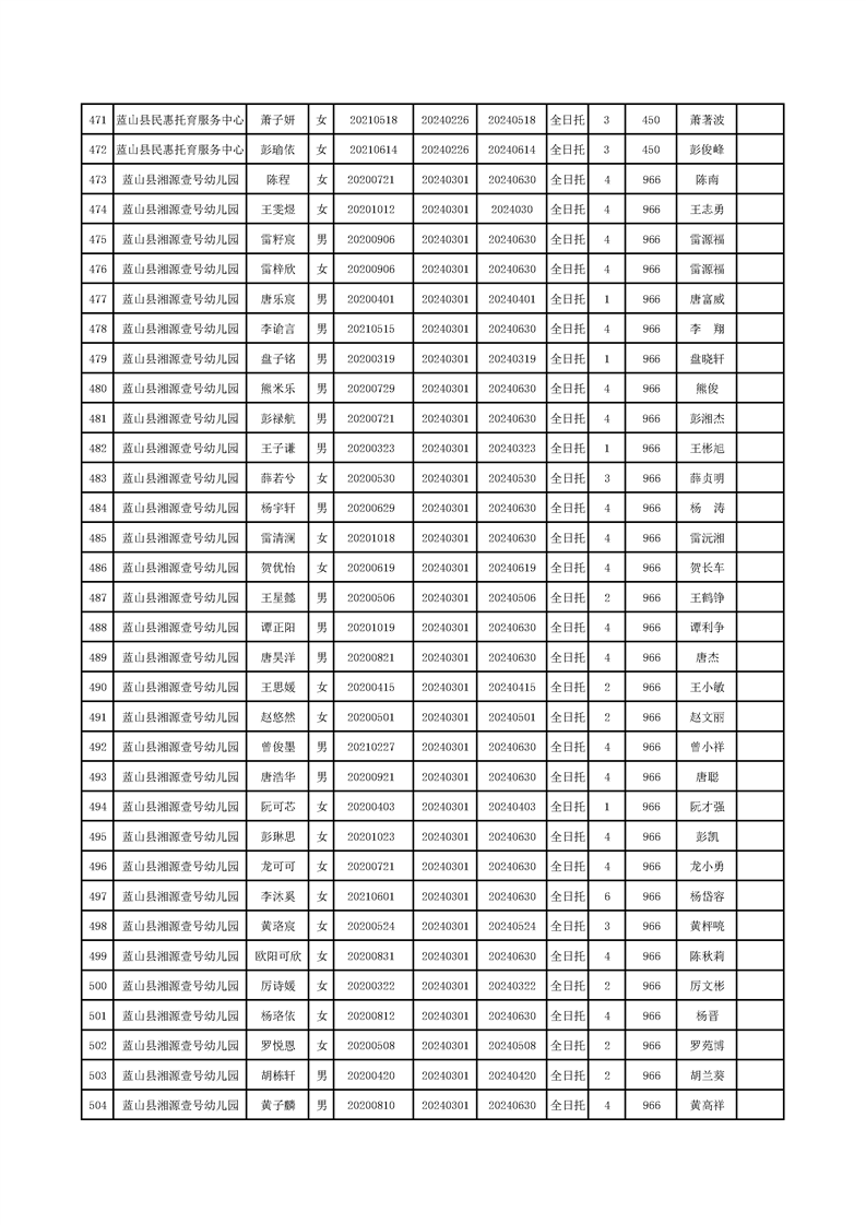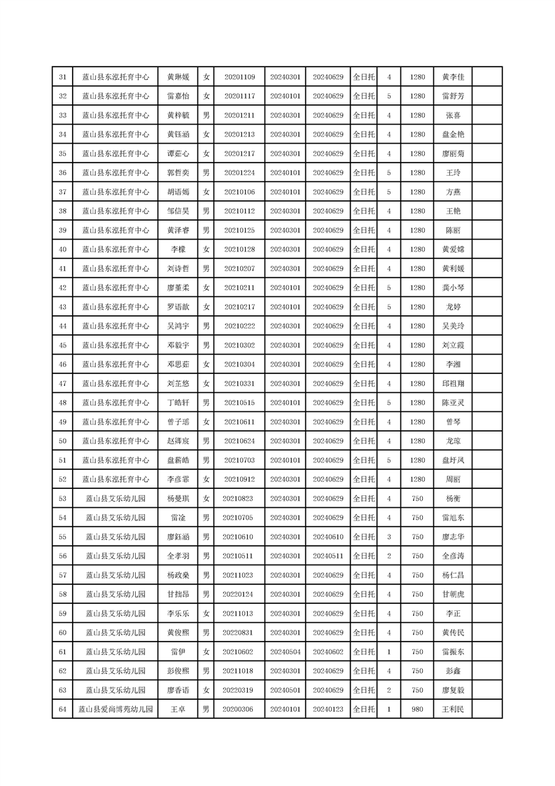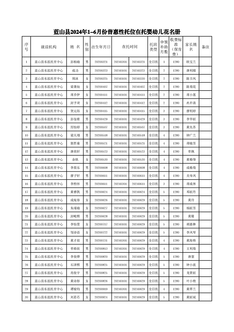 名称: 蓝山县2024年1-6月份普惠性托位在托婴幼儿花名册