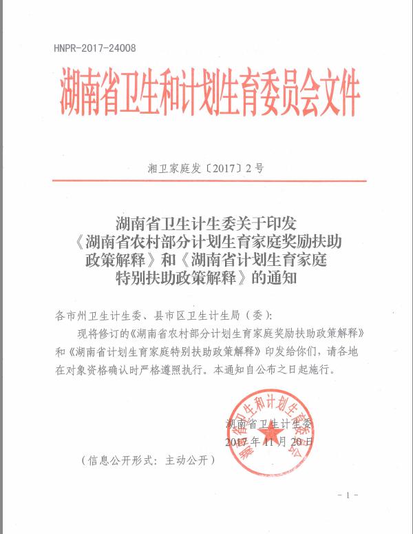 湖南省卫生计生委关于印发《湖南省农村部分计划生育家庭奖励扶助政策解释》和《湖南省计划生育家庭特别扶助政策解释》的通知