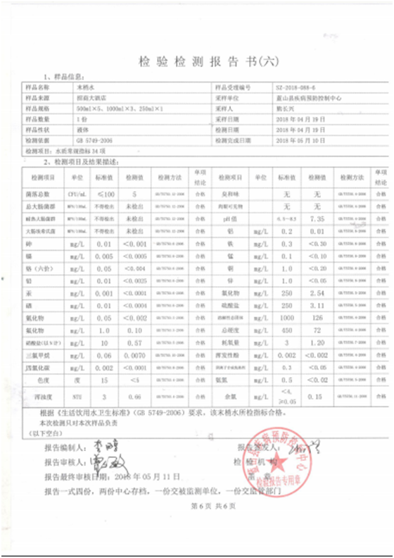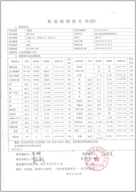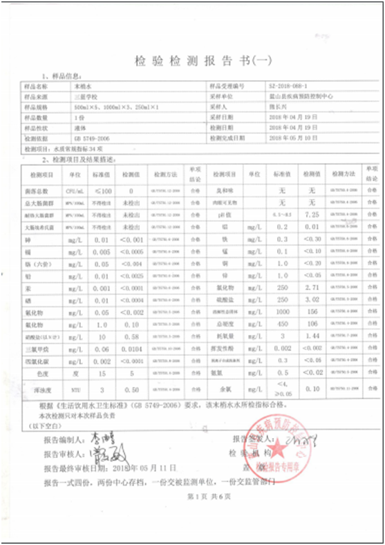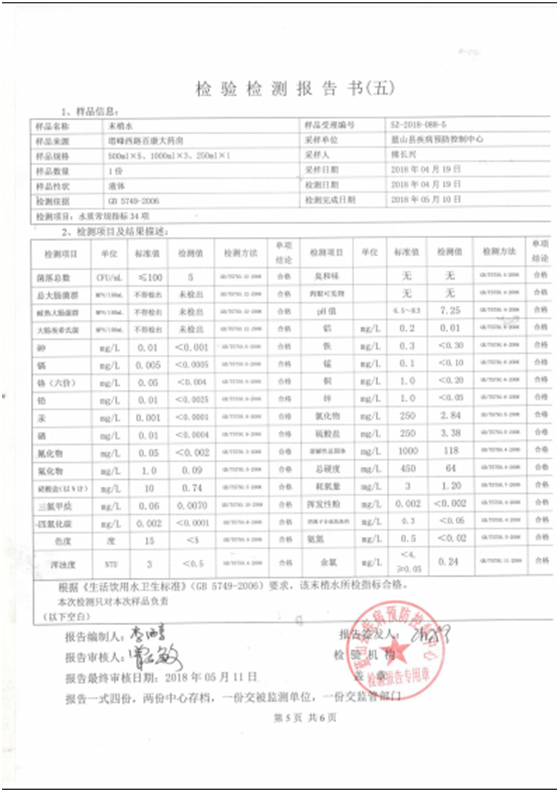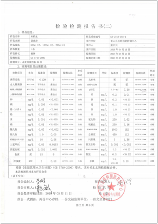名称: 2018年二季度蓝山县城区管网末梢水水质状况报告