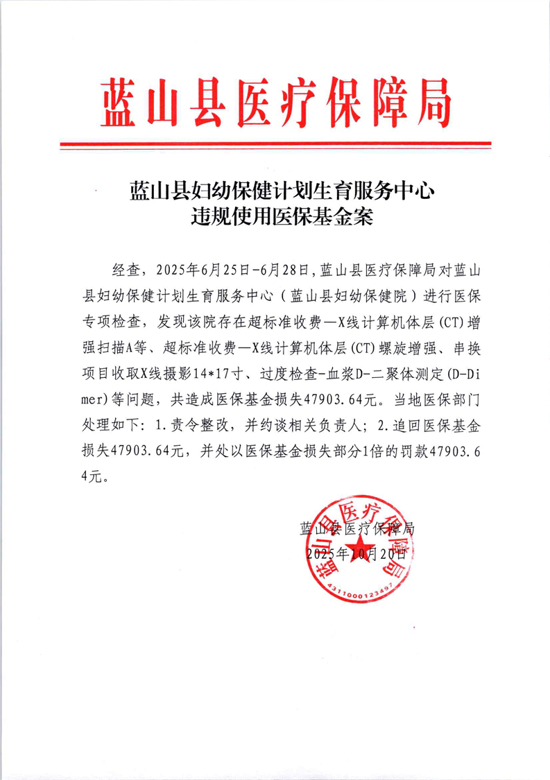 蓝山县妇幼保健计划生育服务中心违规使用医保基金案