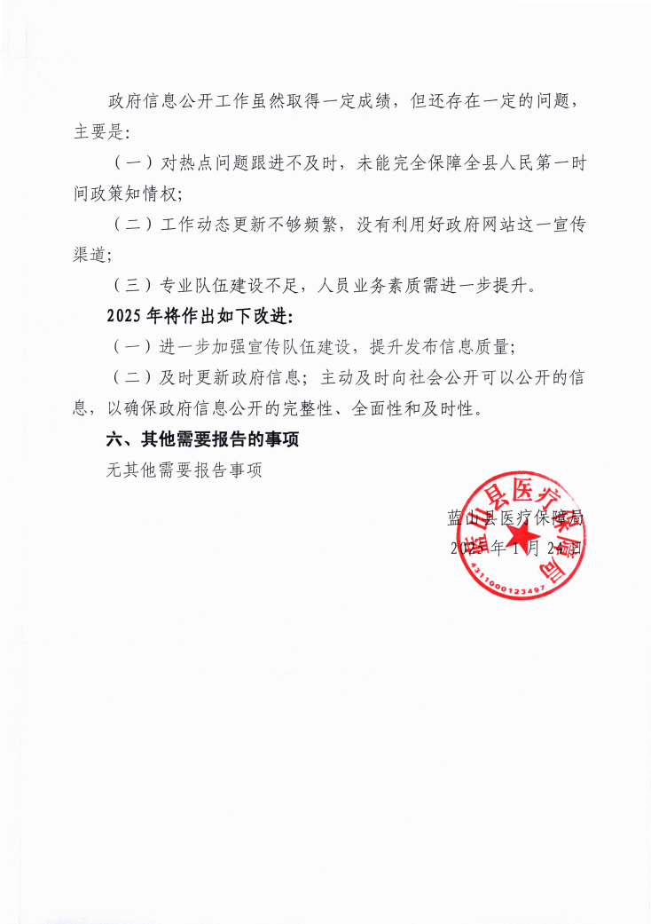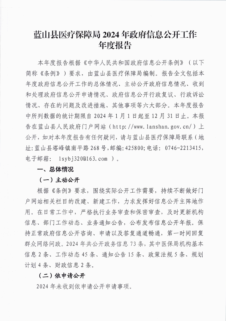 名称: 蓝山县医疗保障局2024年政府信息公开工作年度报告