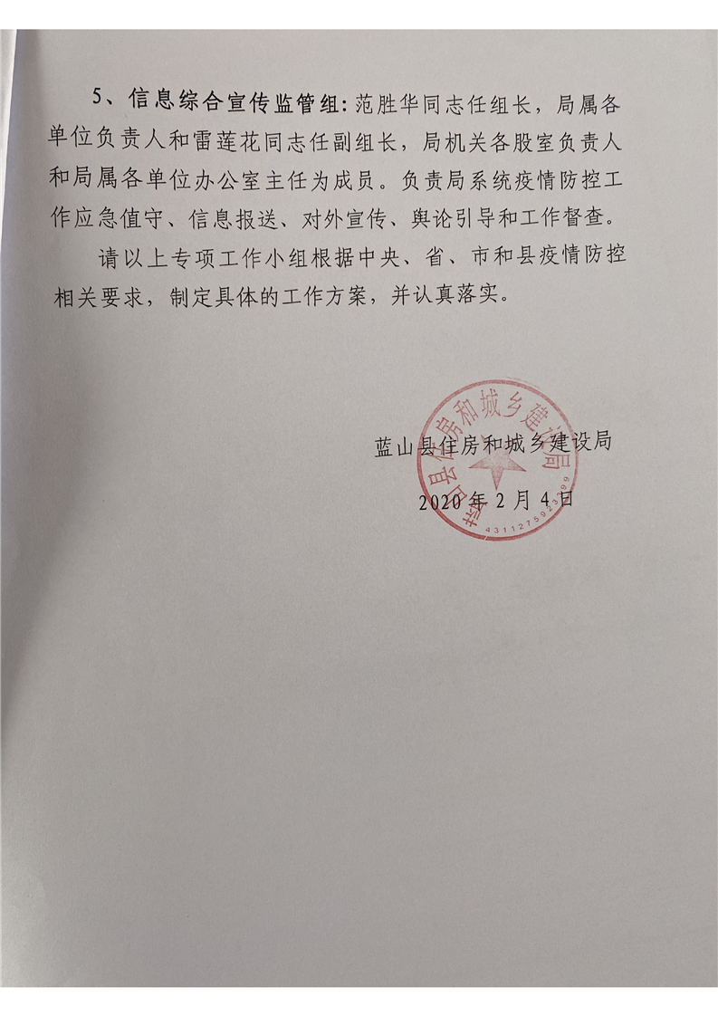 发文机关: 蓝山县住房和城乡建设局 发文日期: 2020-02-06