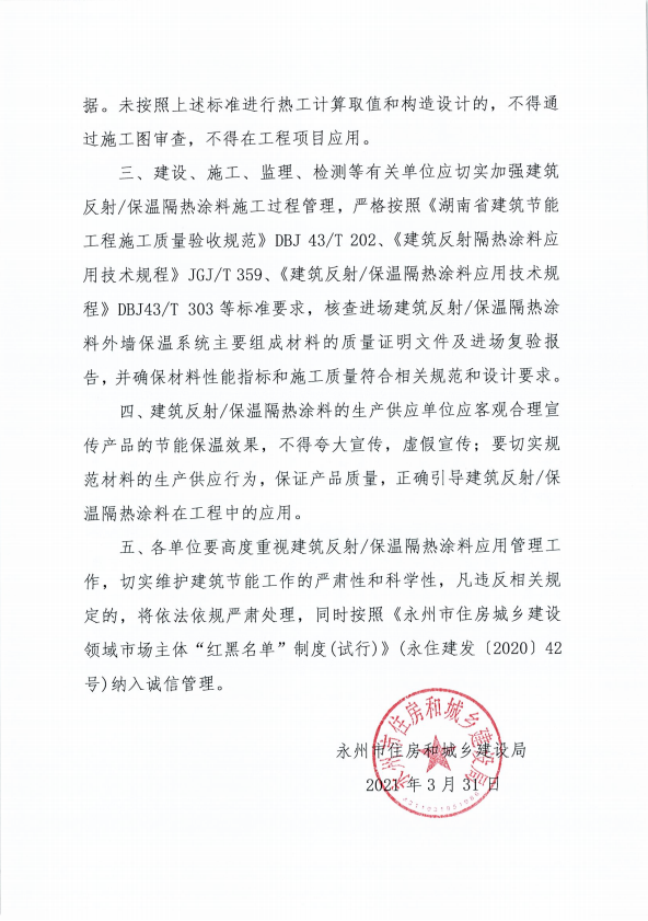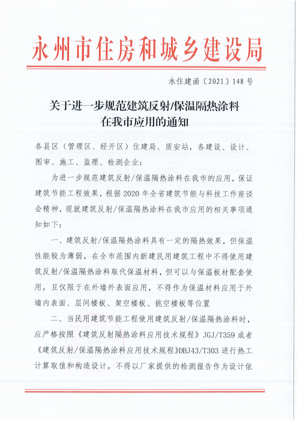 名称: 关于进一步规范建筑反射/保温隔热涂料在我市应用的通知