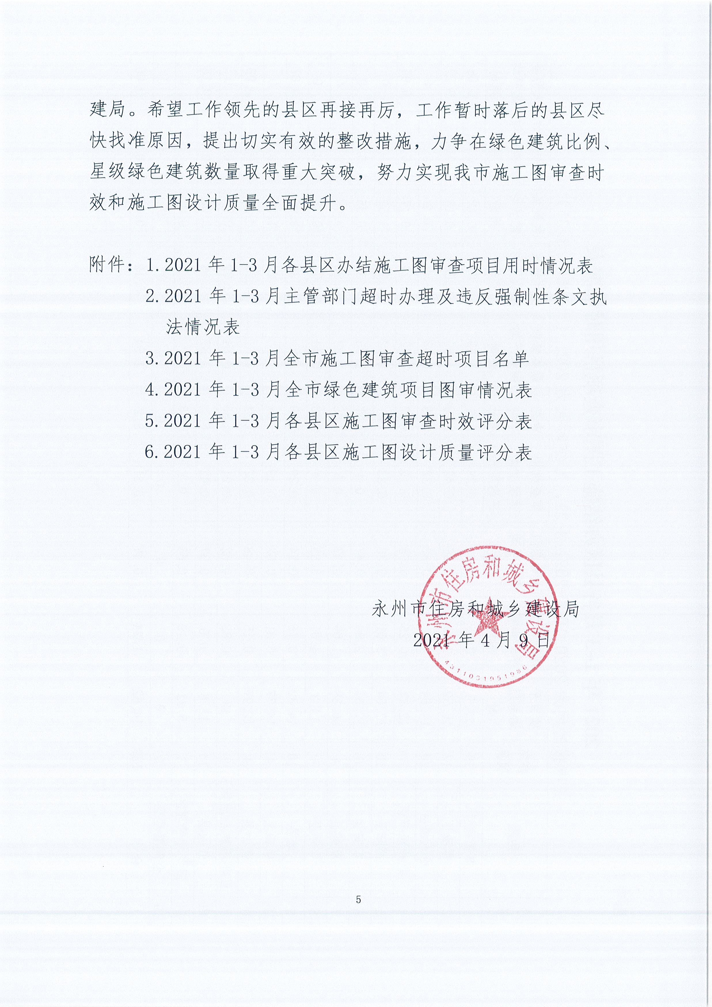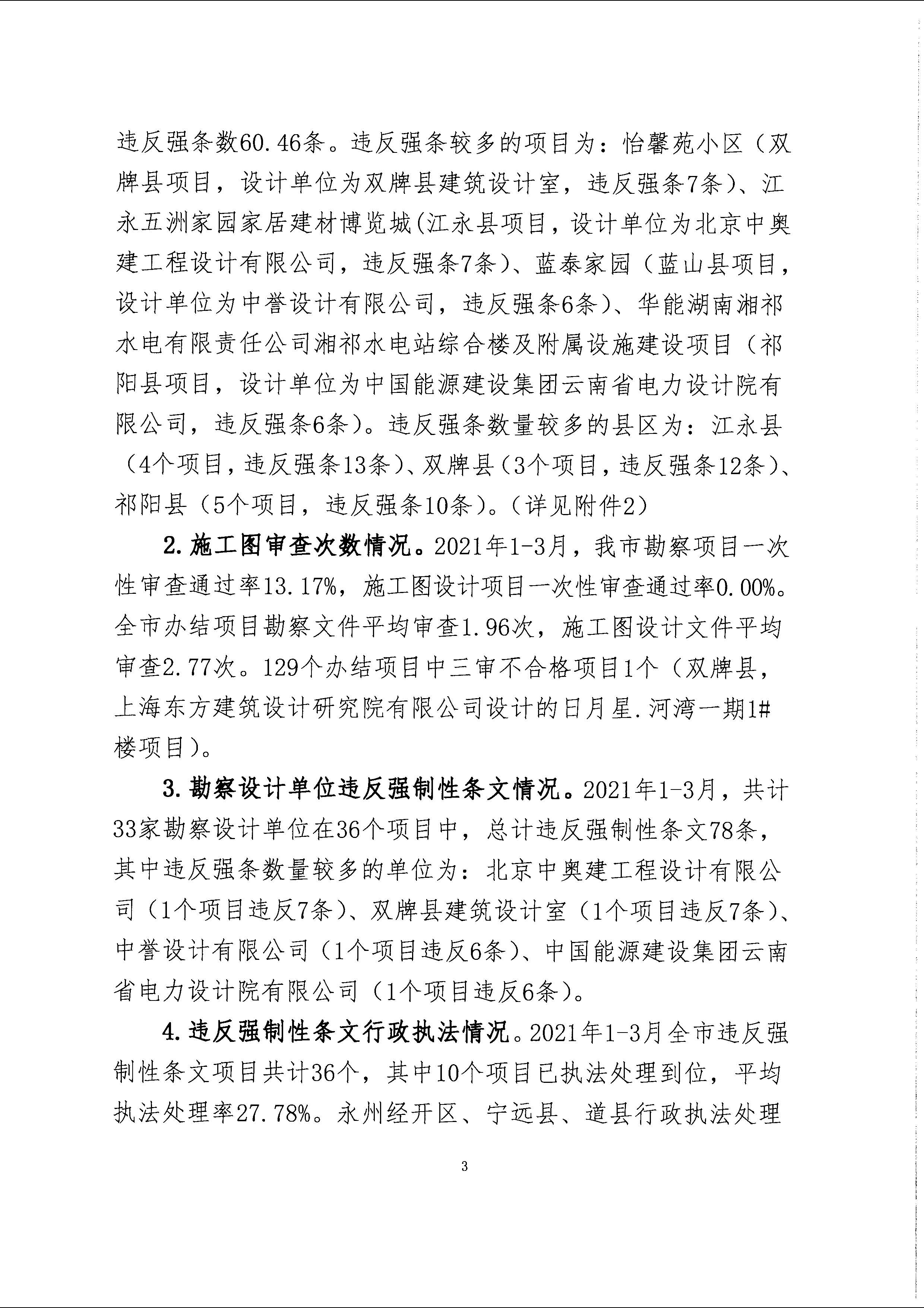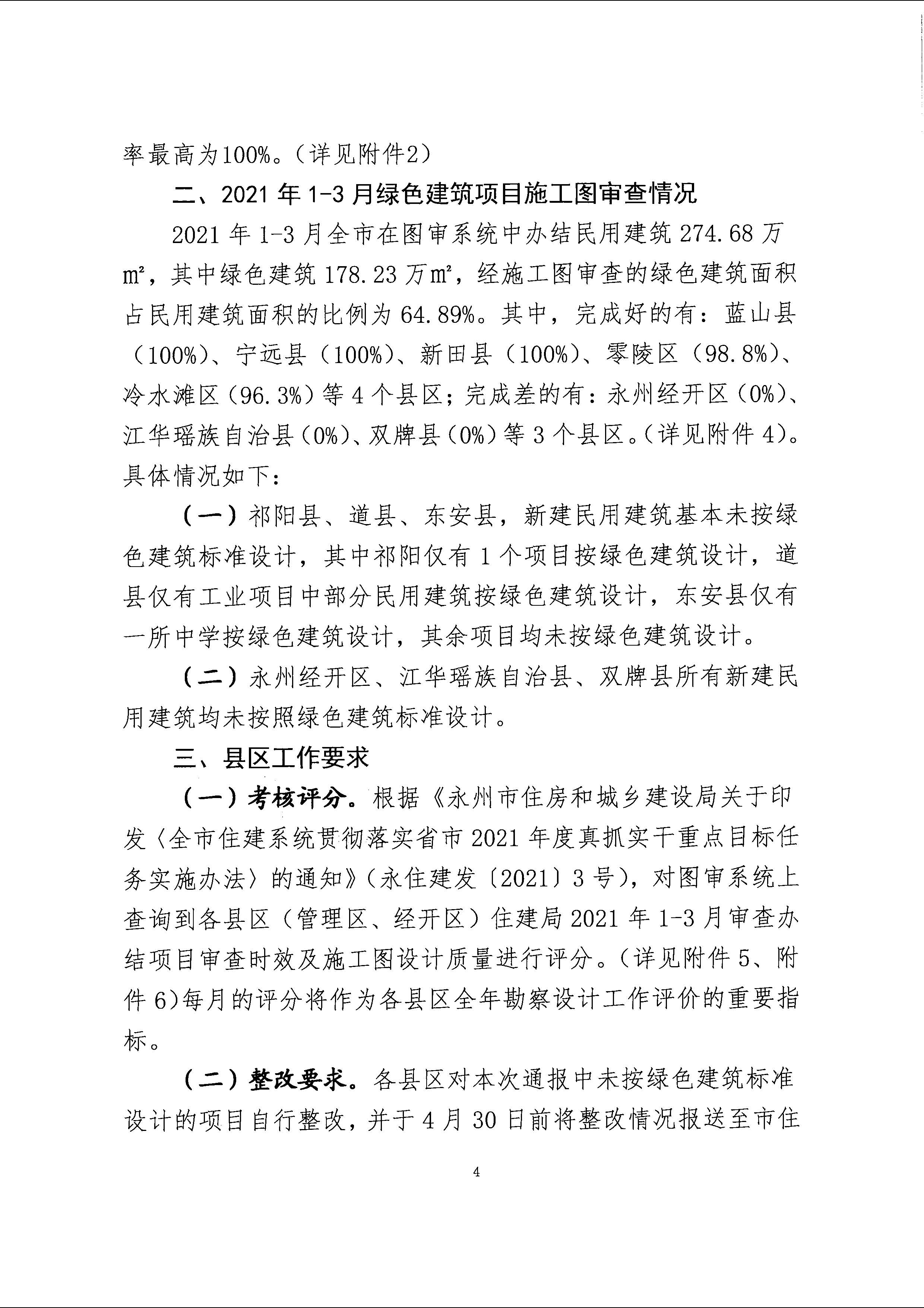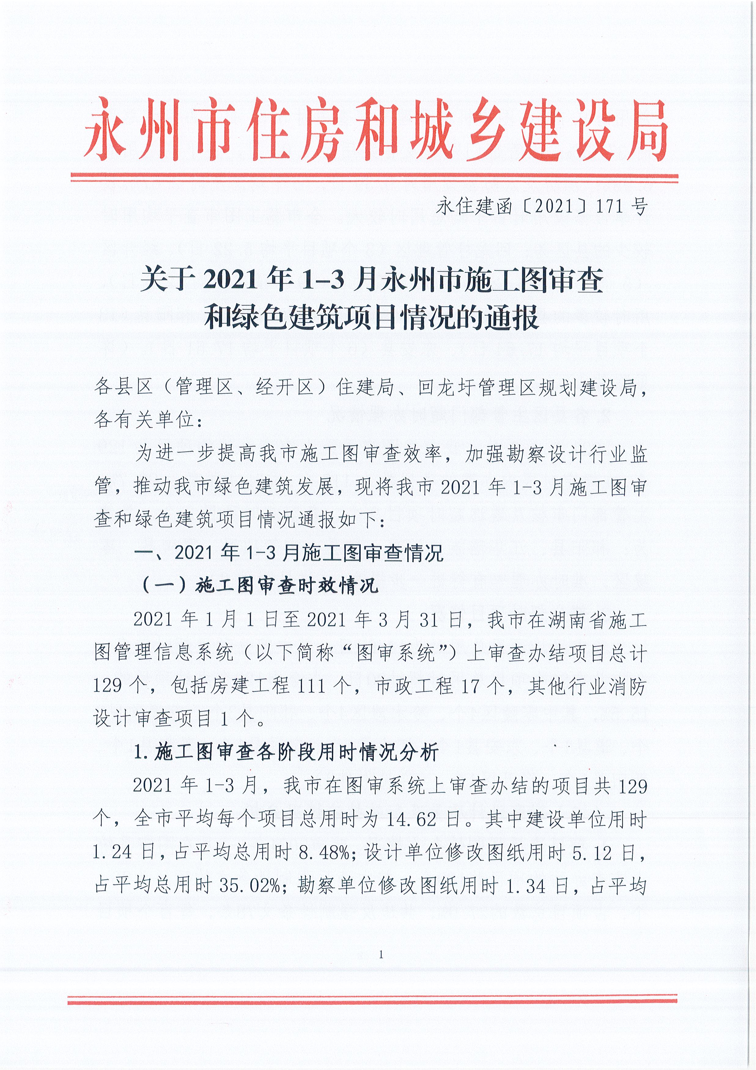 关于2021年1-3月永州市施工图审查和绿色建筑项目情况的通报