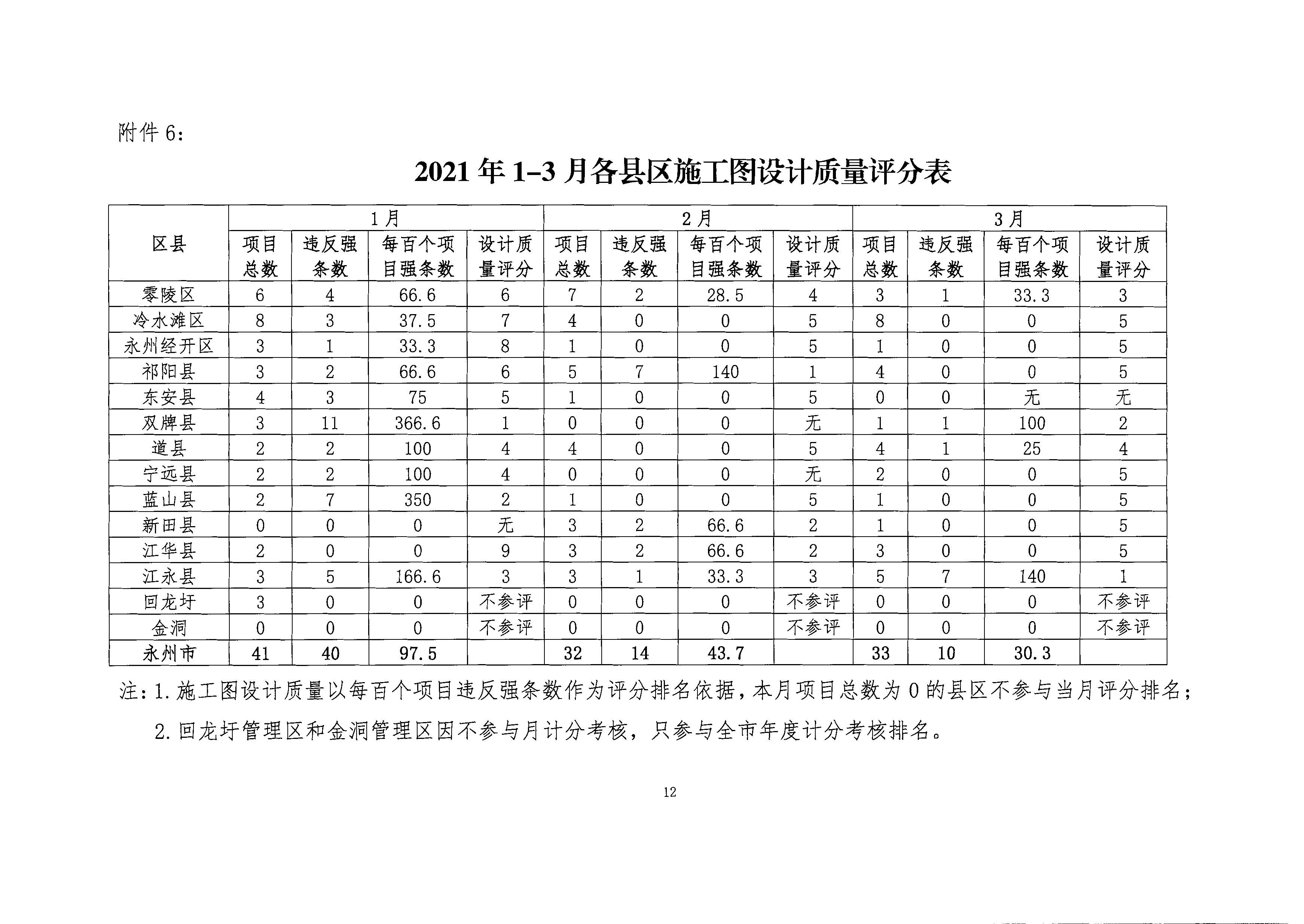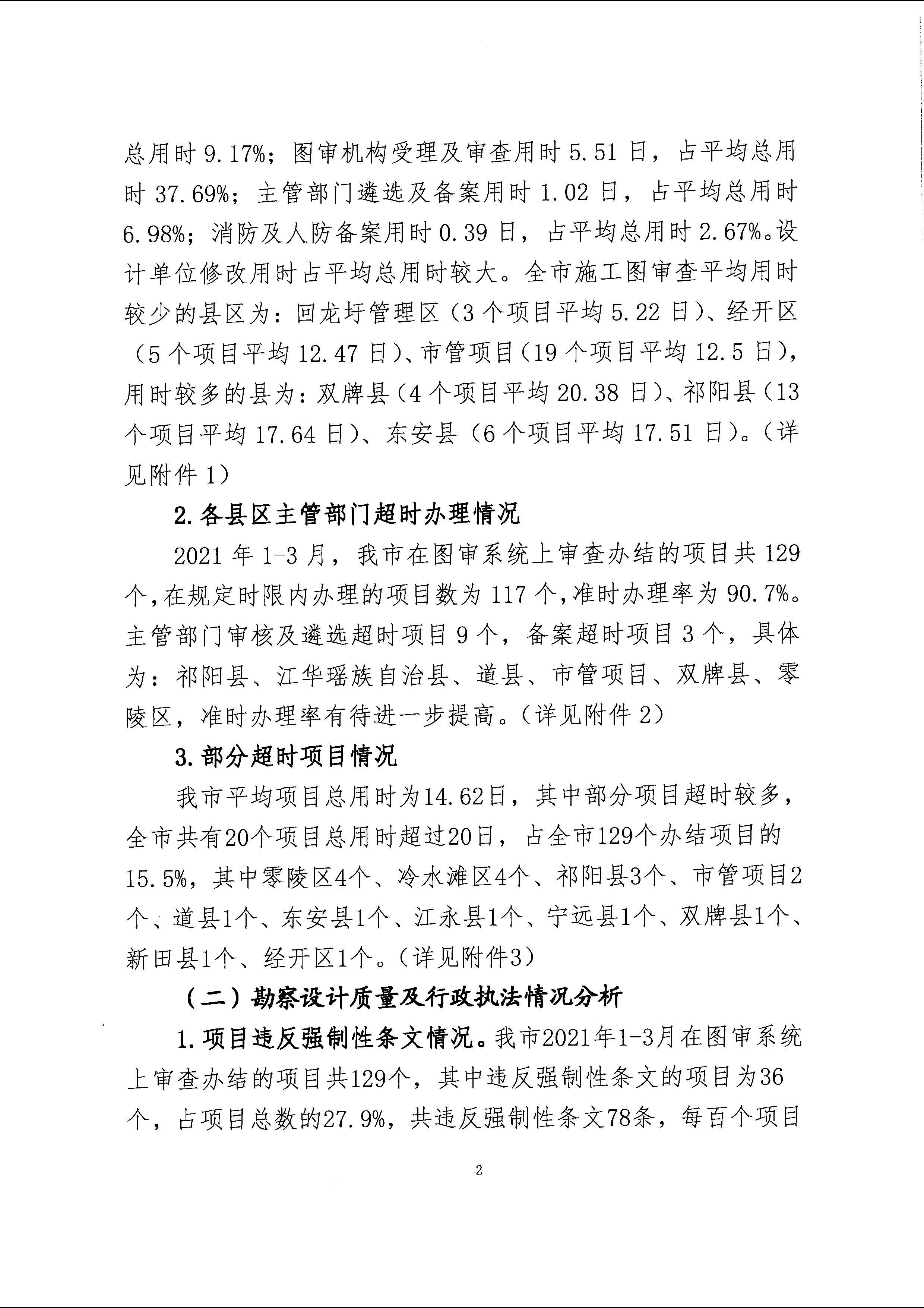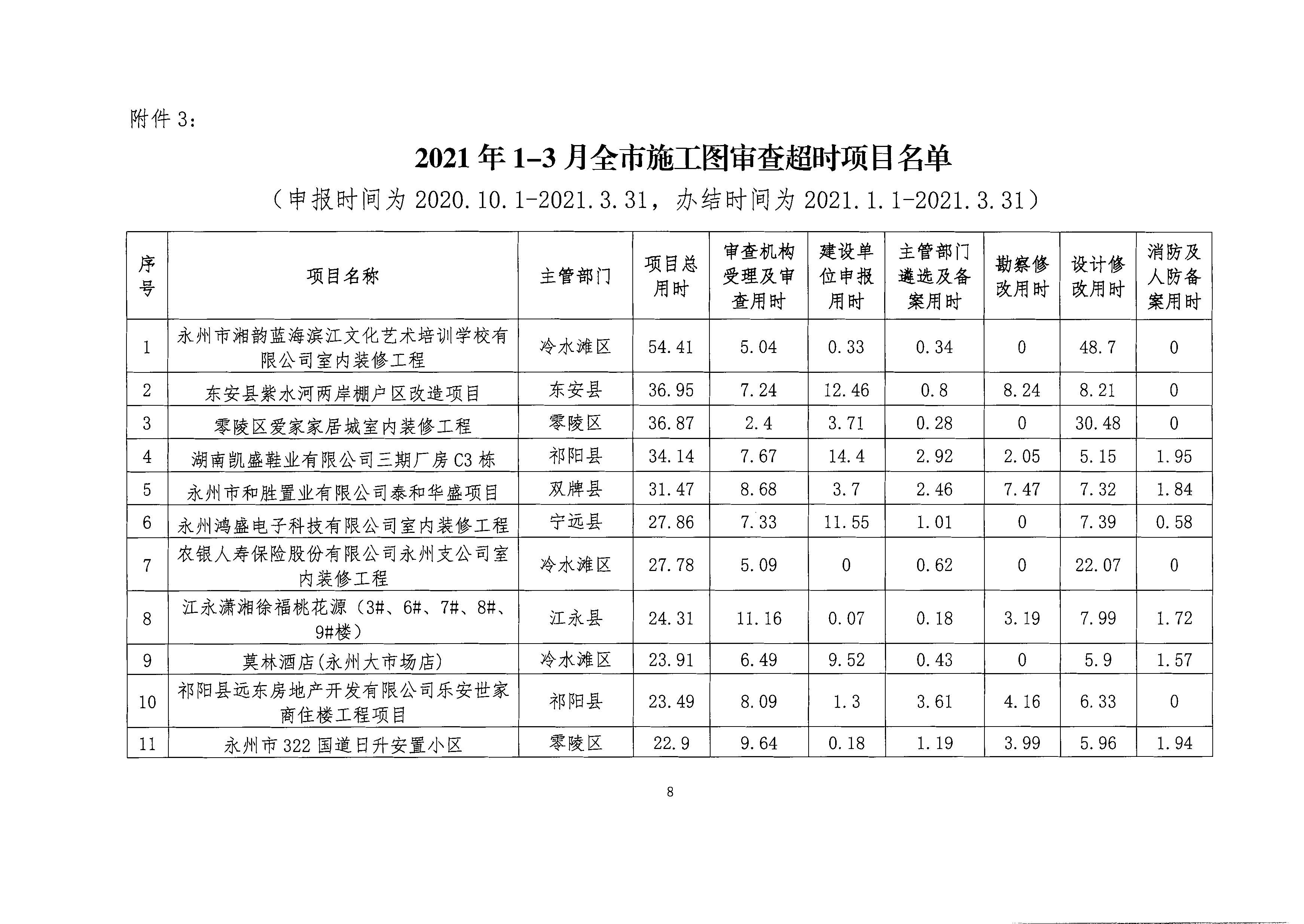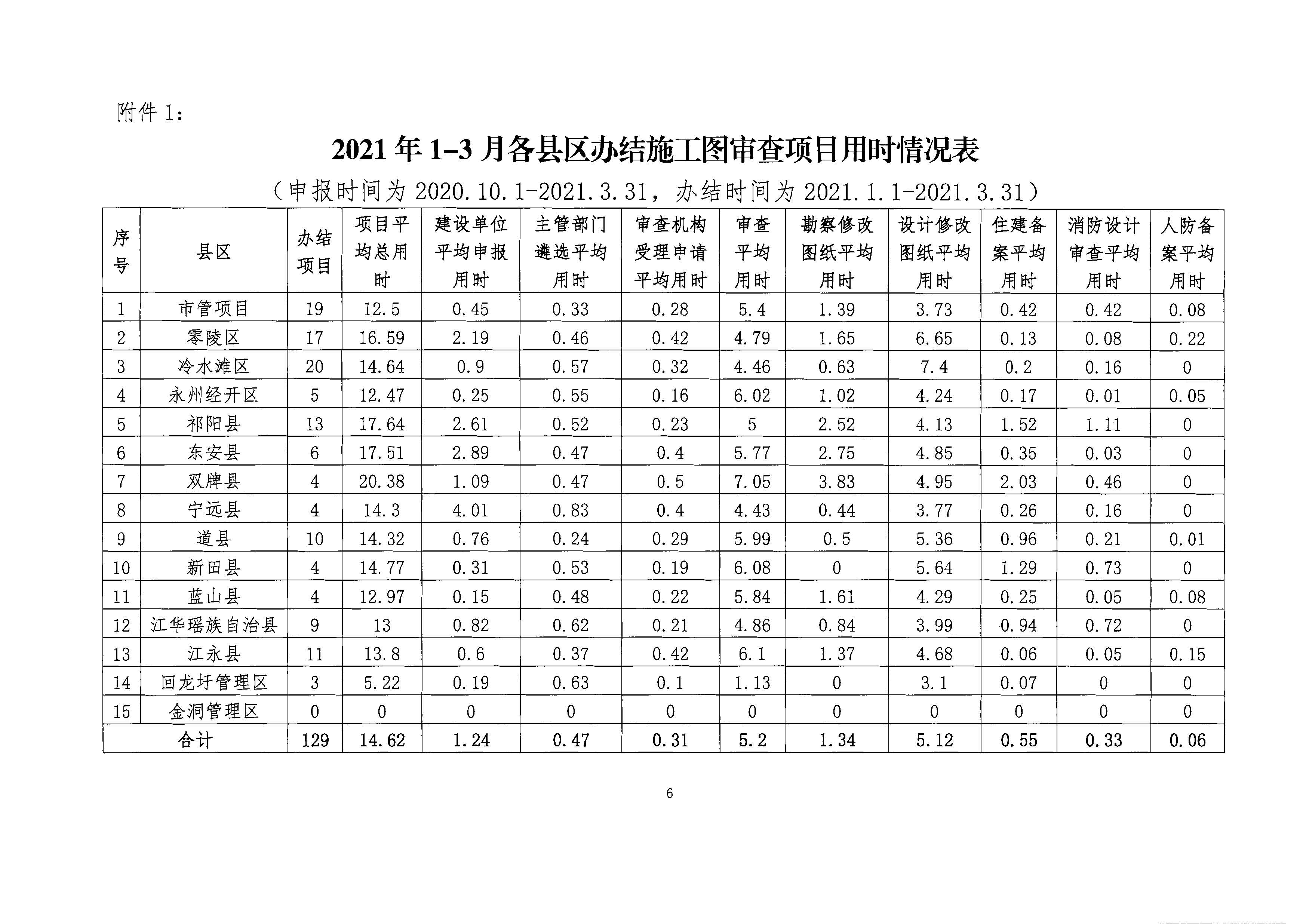 关于2021年1-3月永州市施工图审查和绿色建筑项目情况的通报