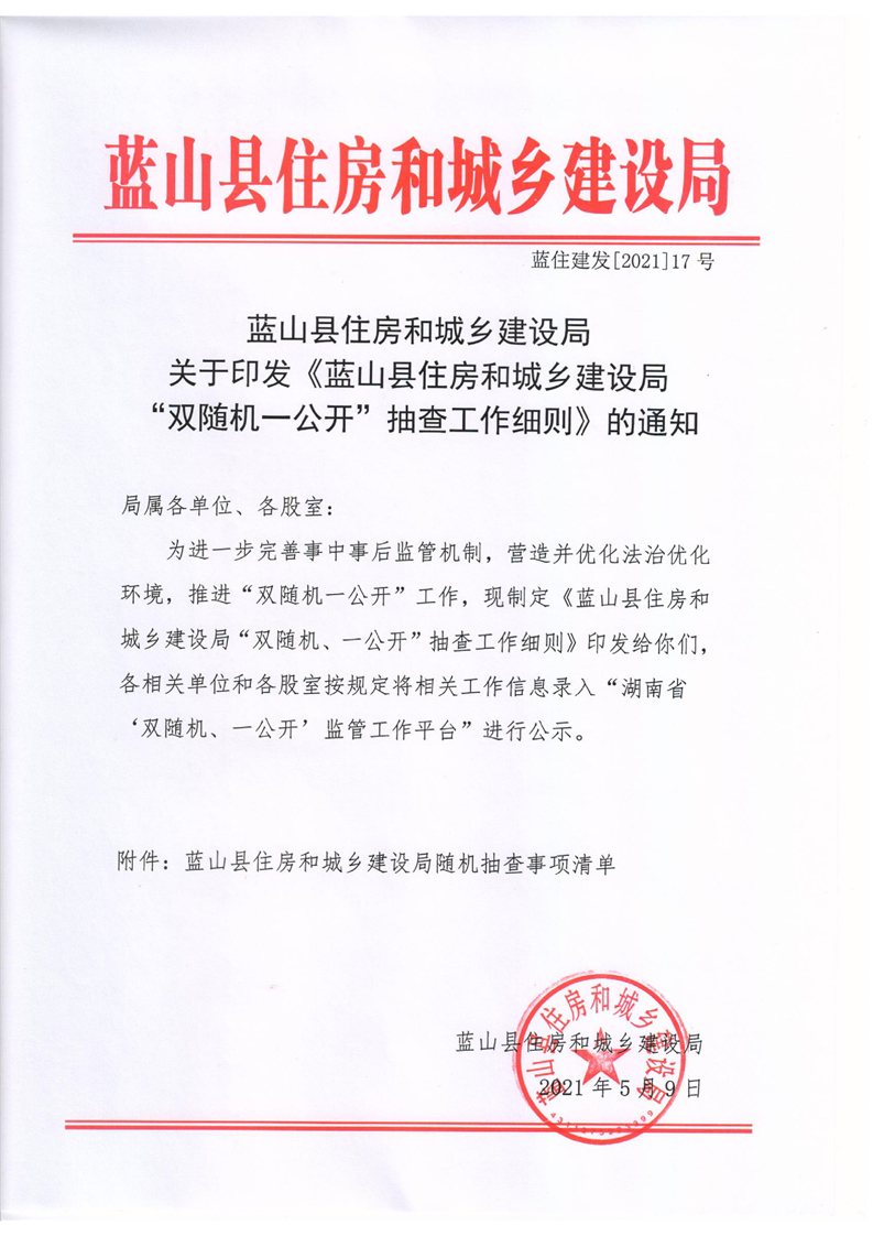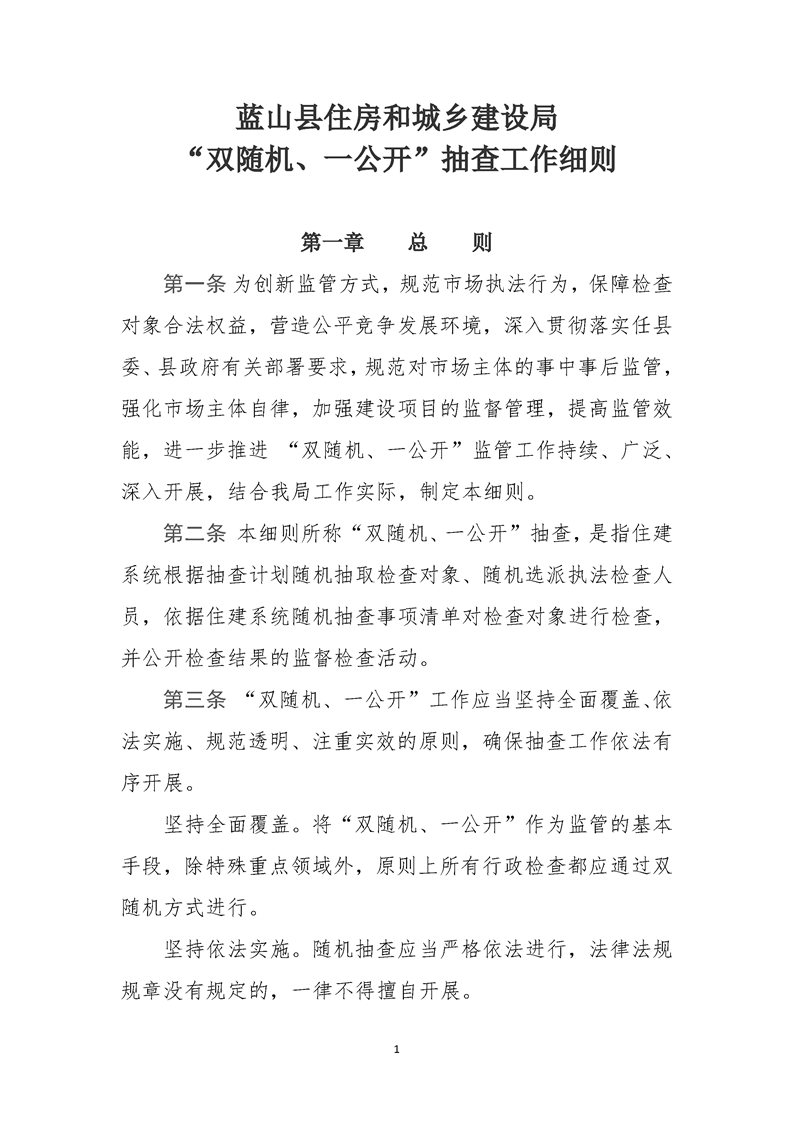 蓝山县住房和城乡建设局“双随机、一公开”抽查工作细则