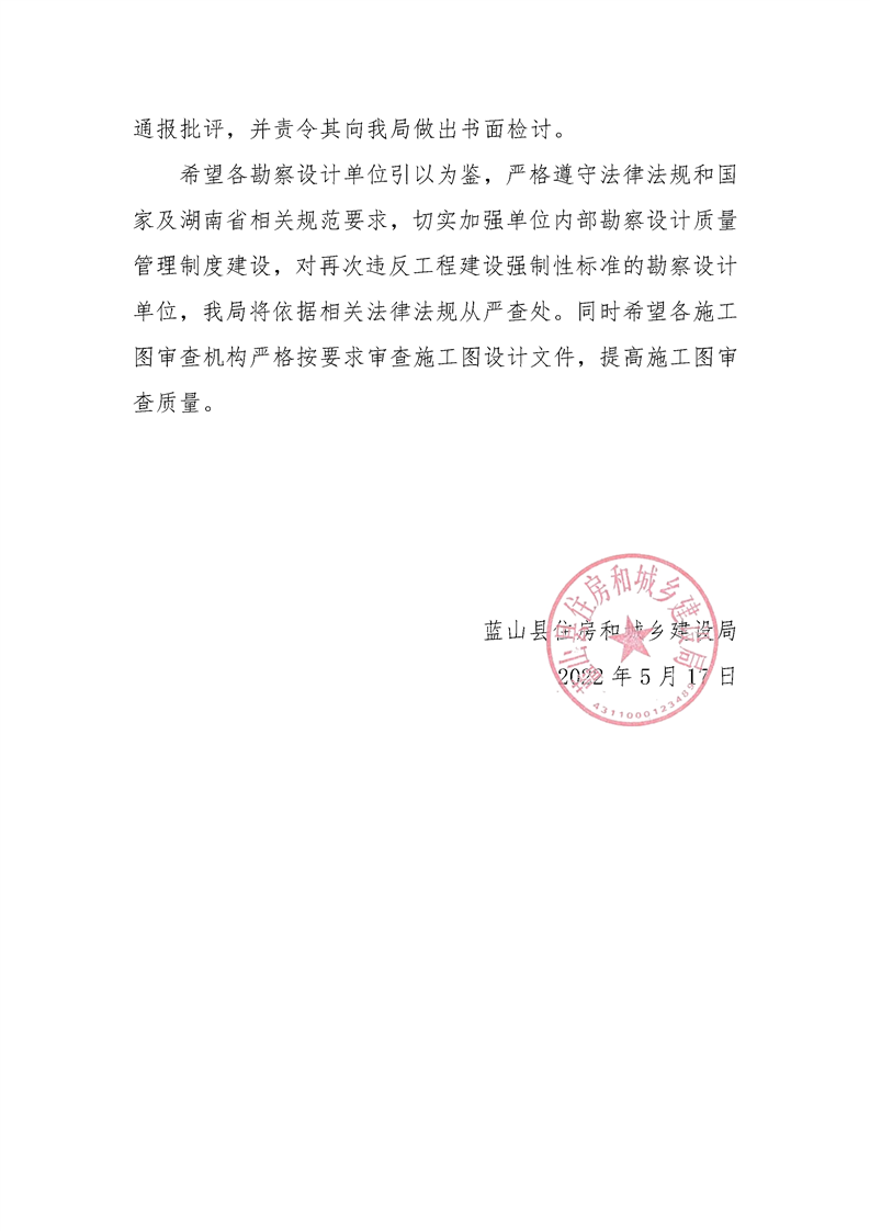 发文机关: 蓝山县住房和城乡建设局 发文日期: 2022-05-18