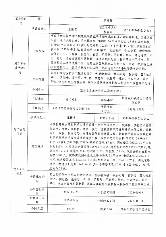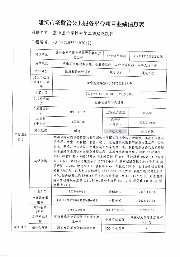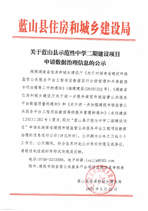 名称: 关于蓝山县示范性中学二期建设项目申请数据治理信息的公示