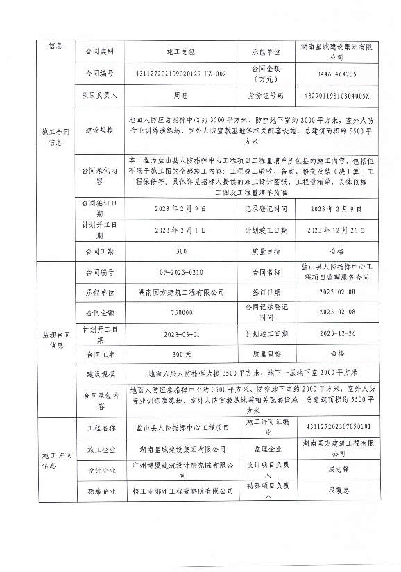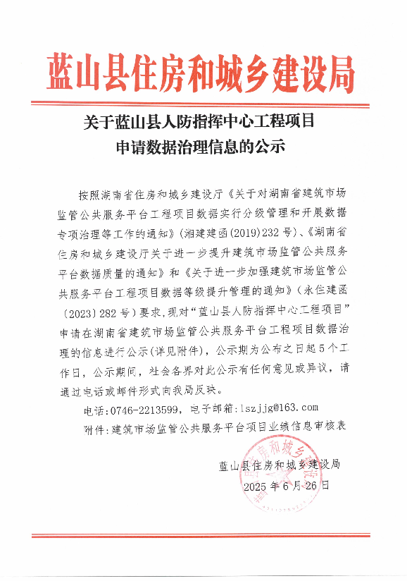 关于蓝山县人防指挥中心工程项目申请数据治理信息的公示