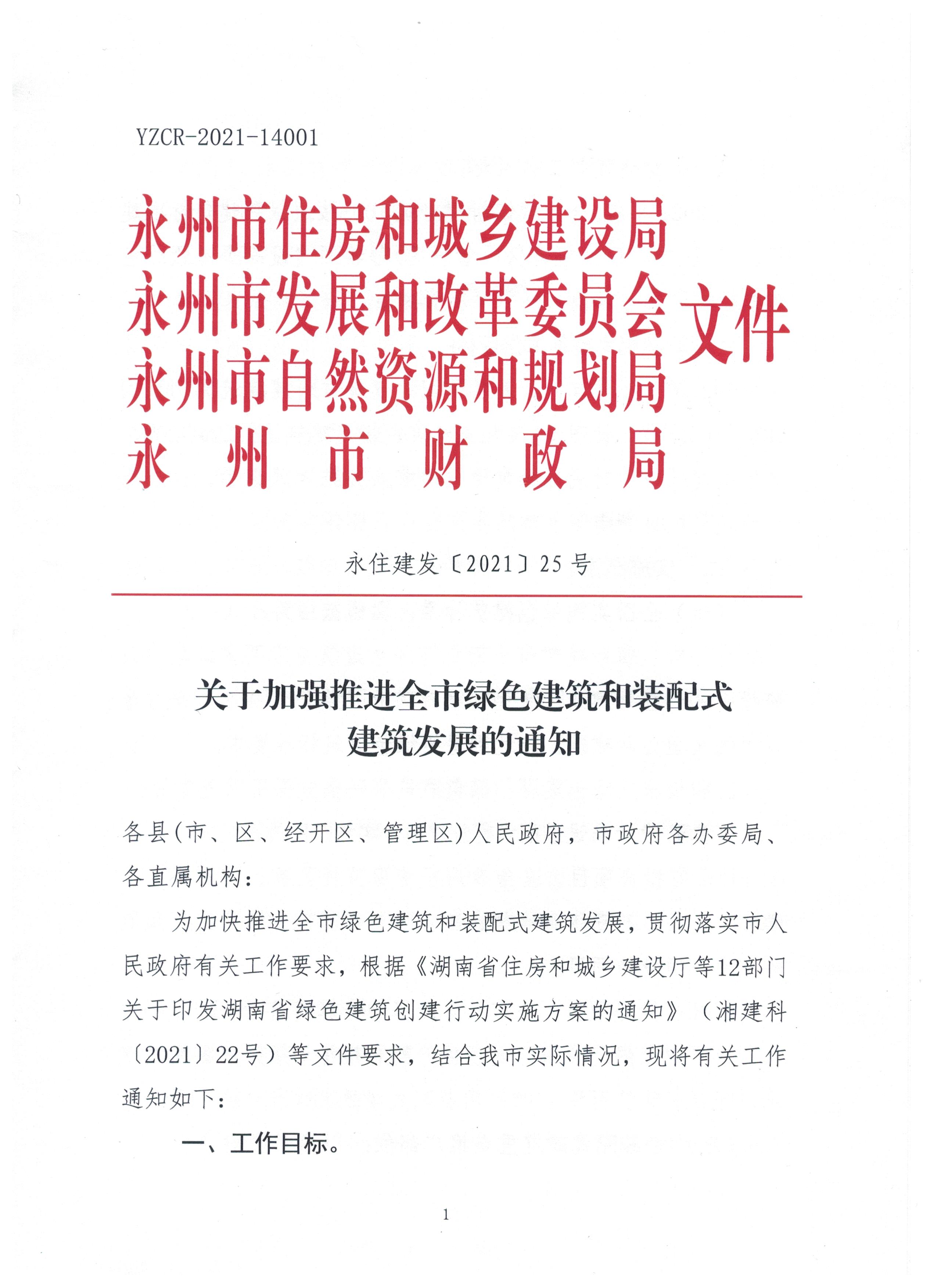 关于加强推进全市绿色建筑和装配式建筑发展的通知