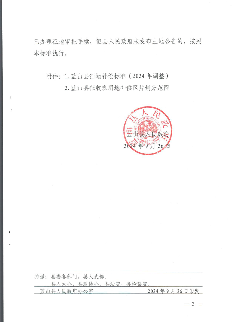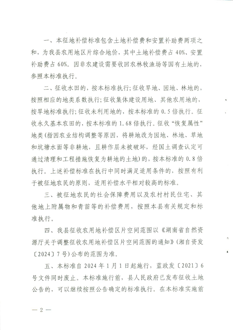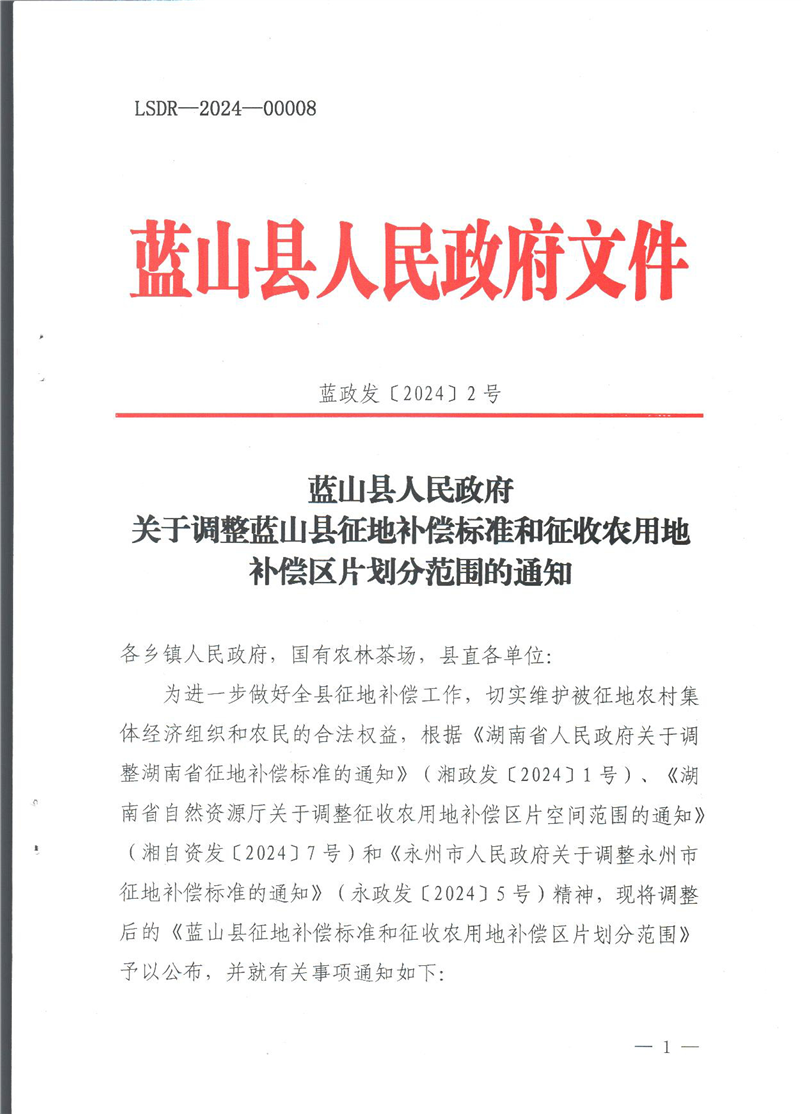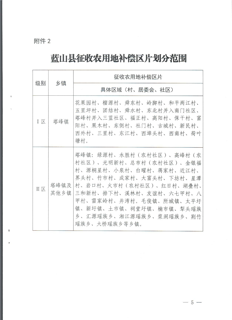 关于调整蓝山县征地补偿标准和征收农用地补偿片区划分范围的通知