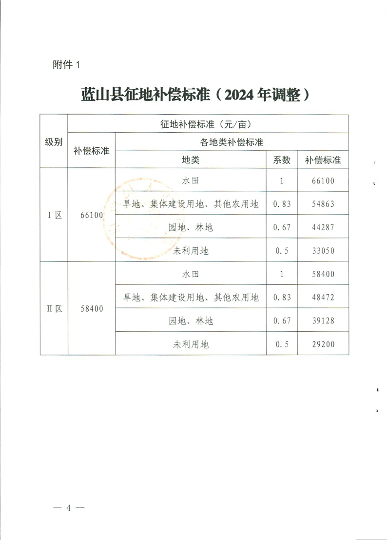 名称: 关于调整蓝山县征地补偿标准和征收农用地补偿片区划分范围的通知