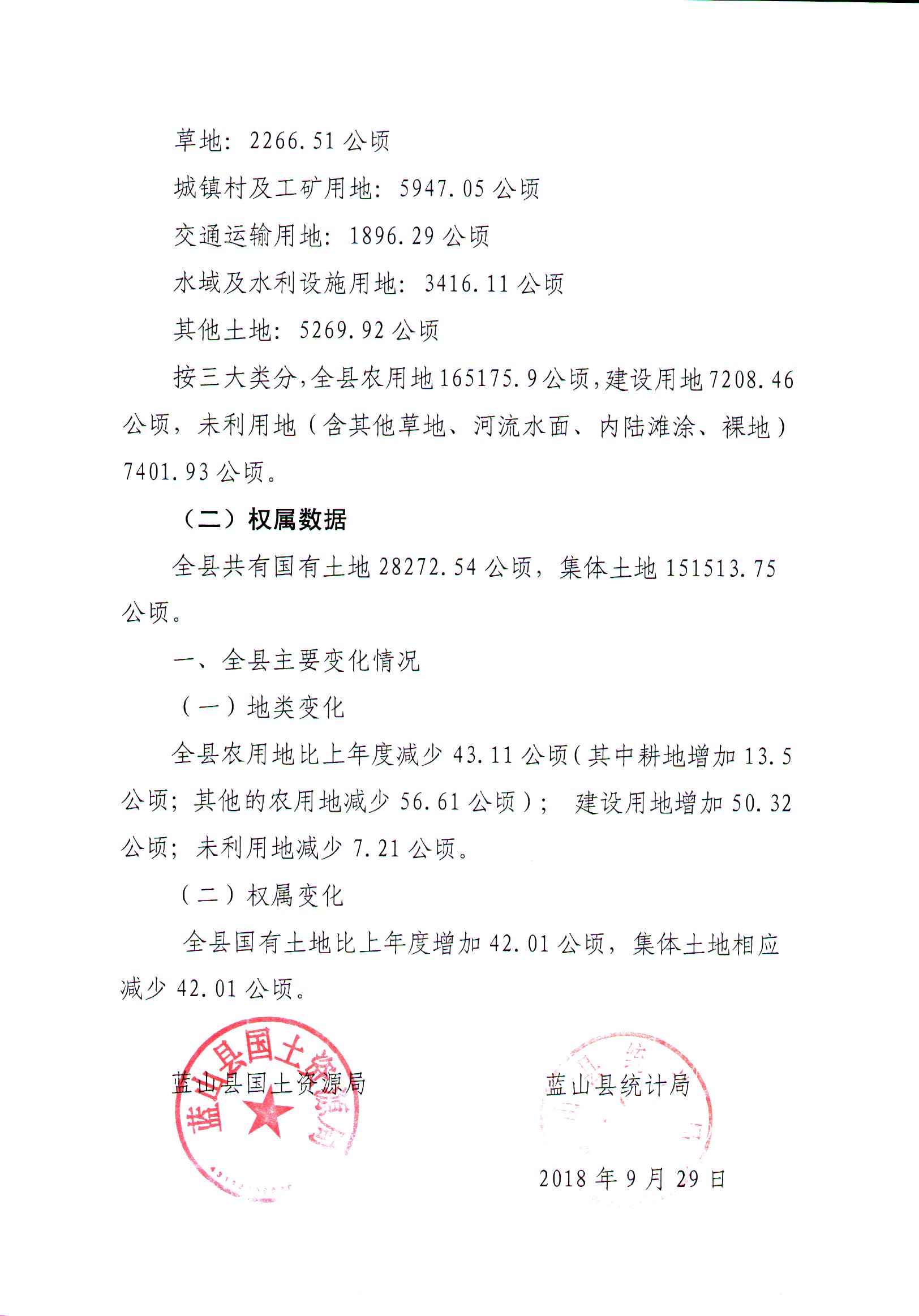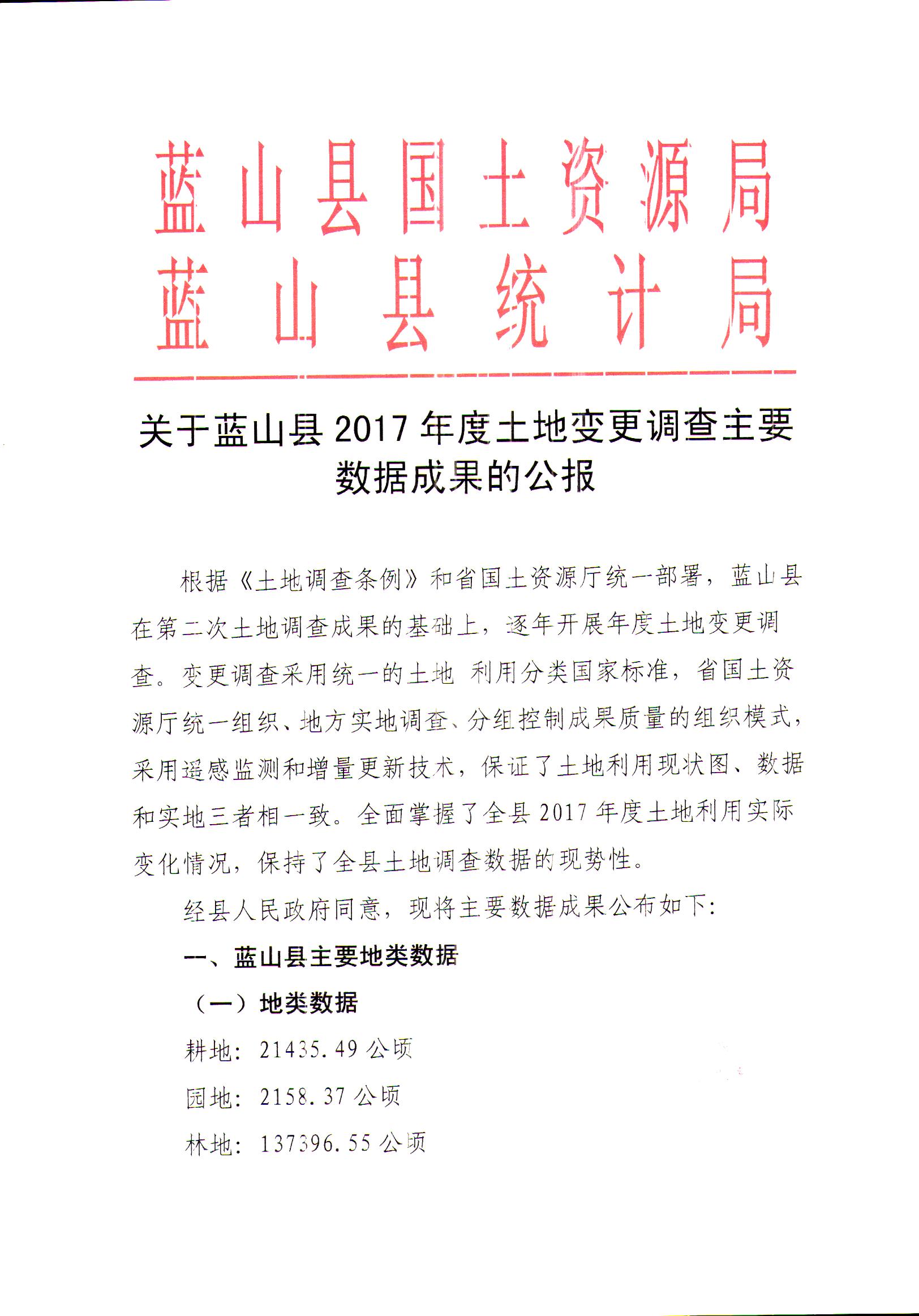 名称: 关于蓝山县2017年度土地变更调查主要数据成果的公报