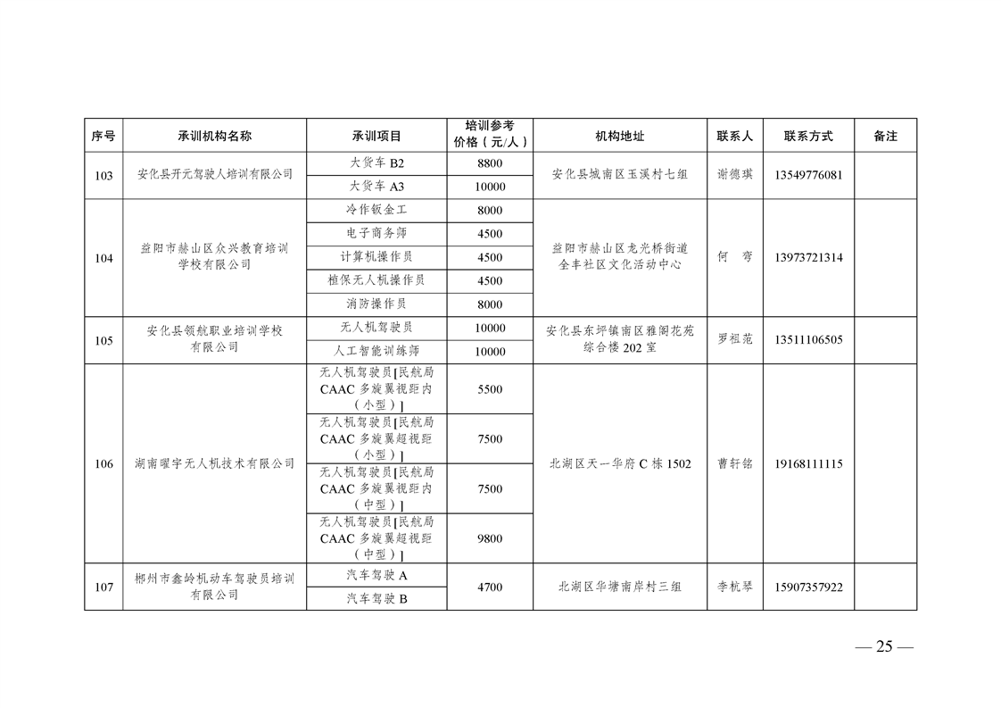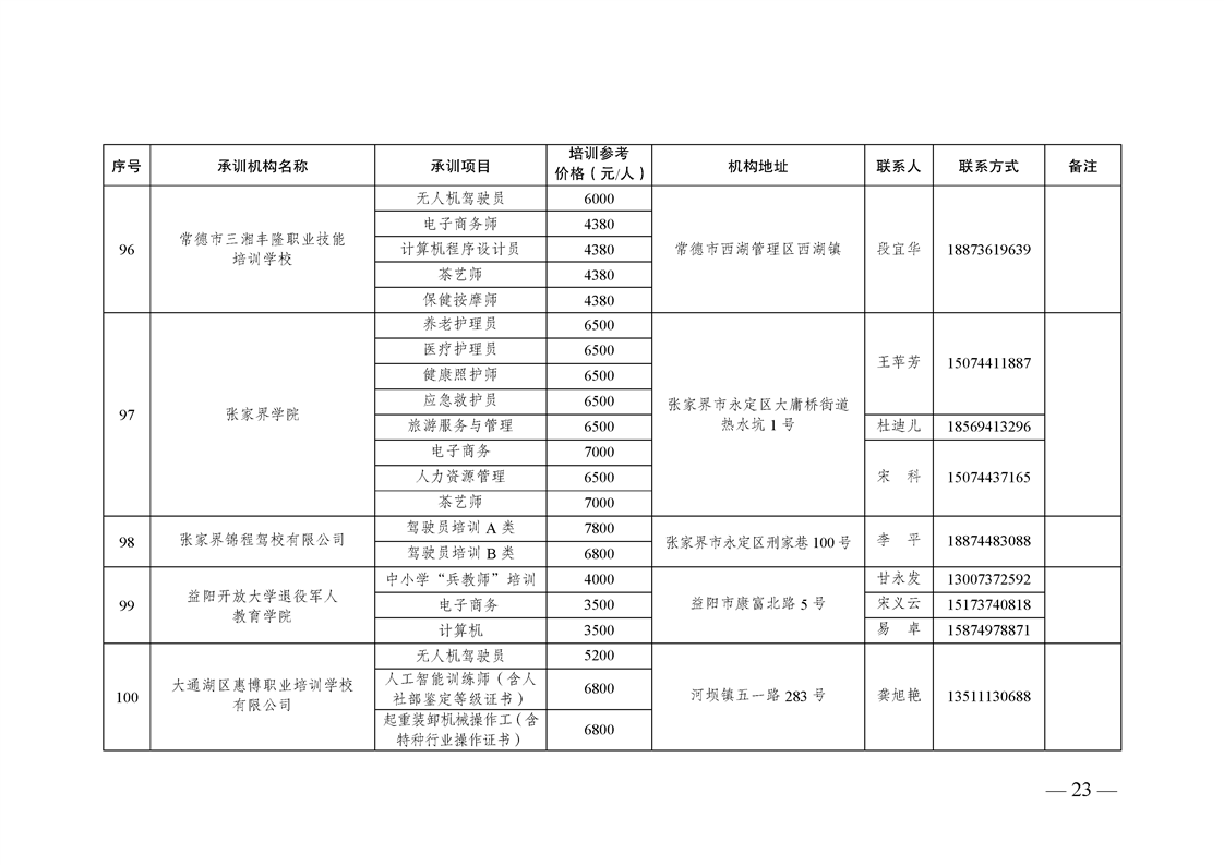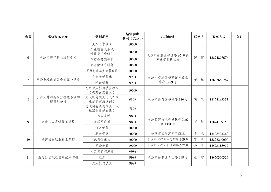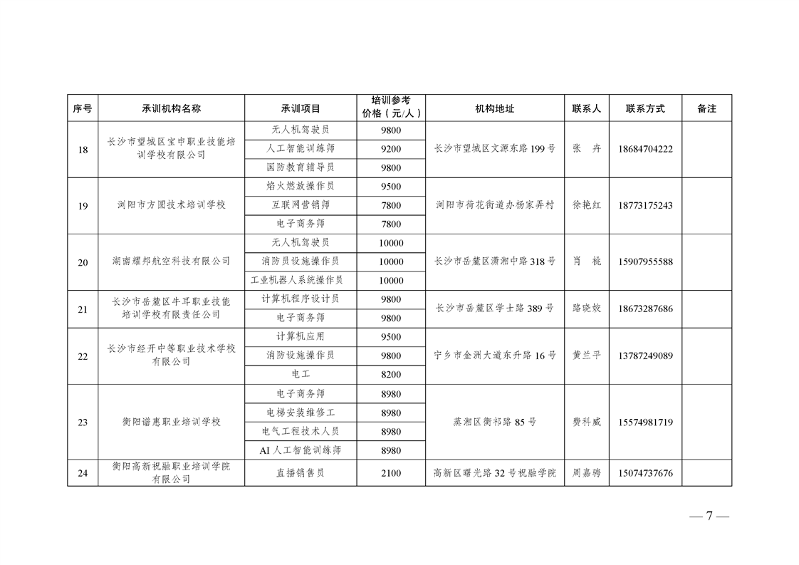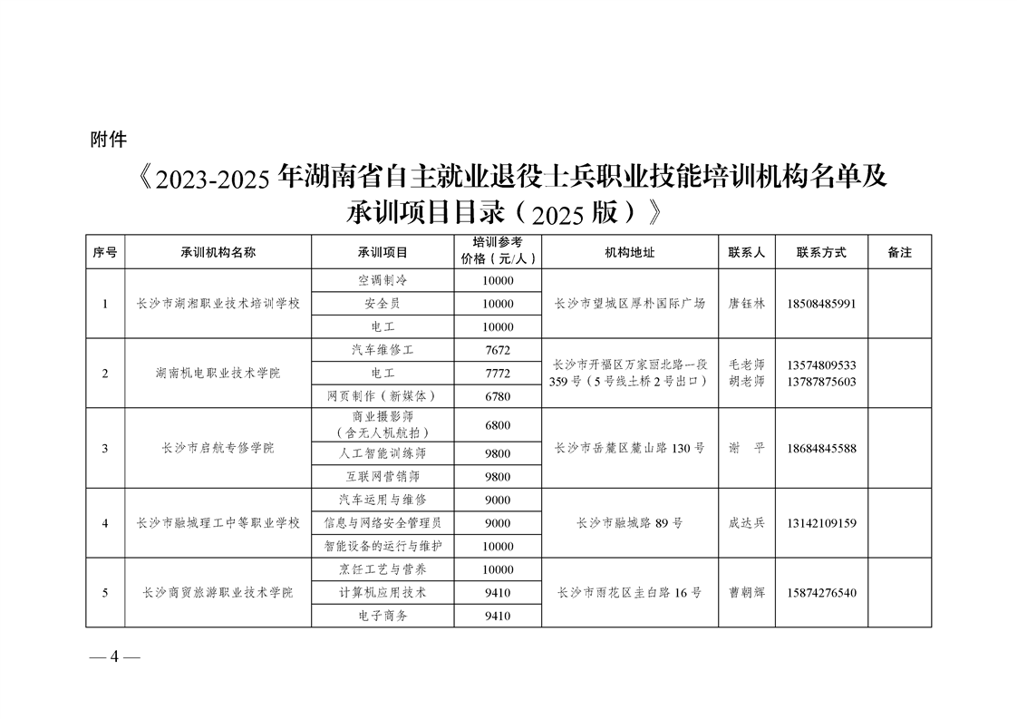 2023-2025年湖南省自主就业退役士兵职业技能培训机构名单及承训项目目录(2025版)