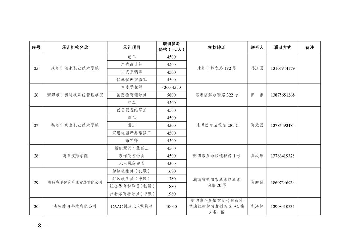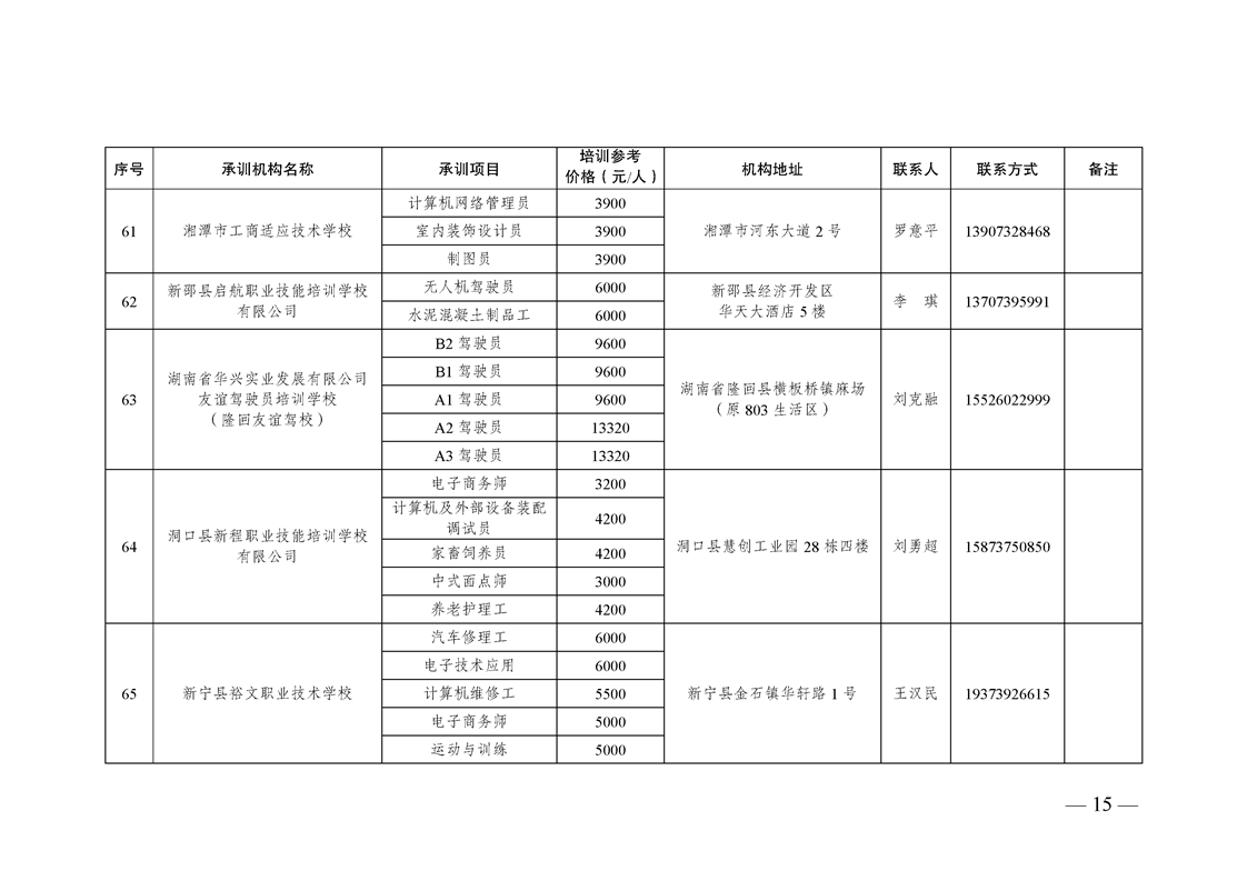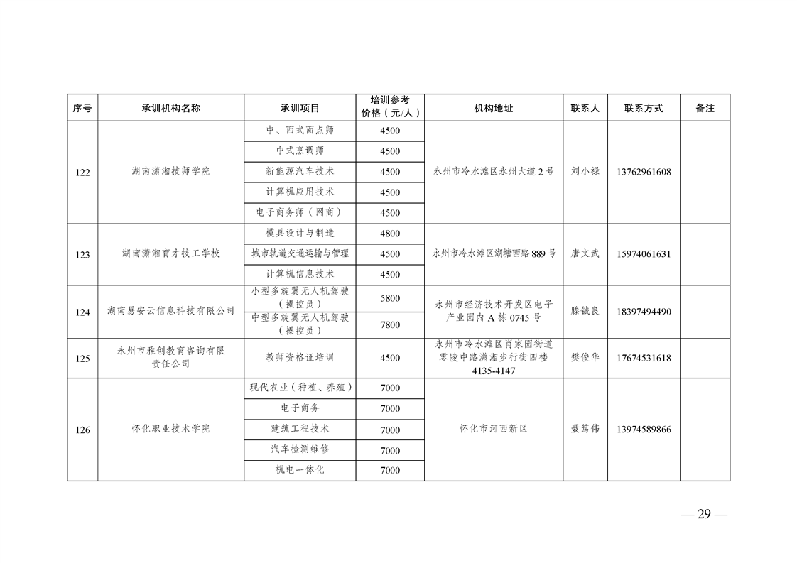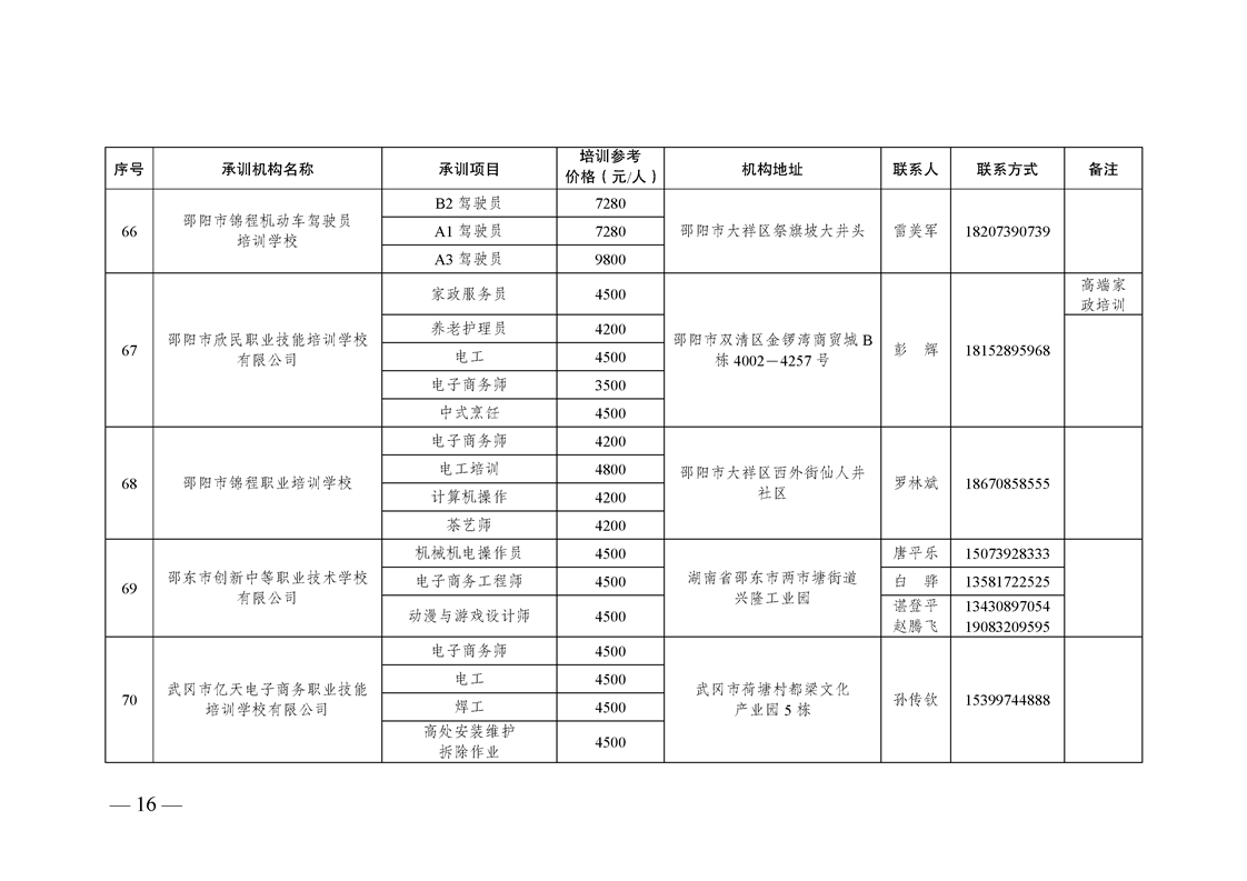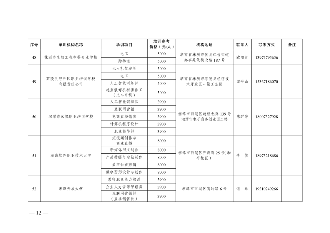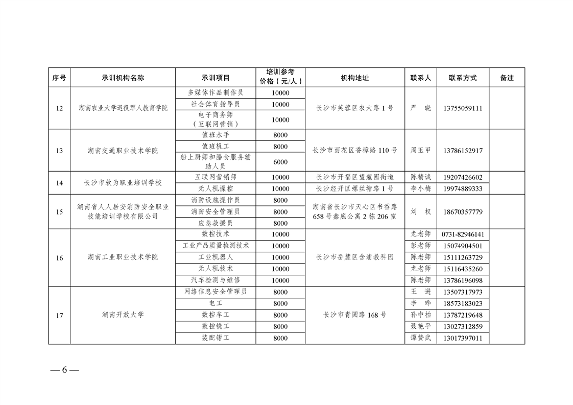 2023-2025年湖南省自主就业退役士兵职业技能培训机构名单及承训项目目录(2025版)