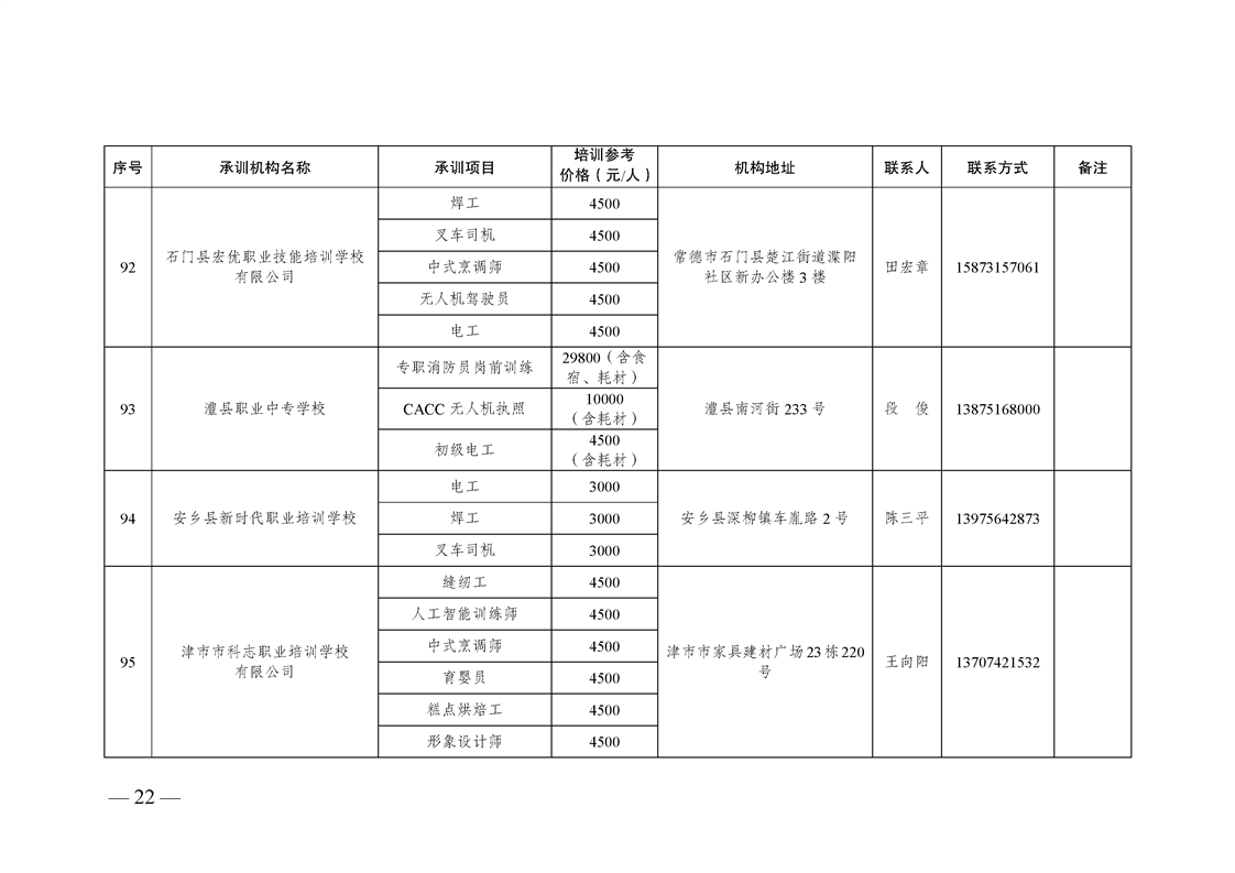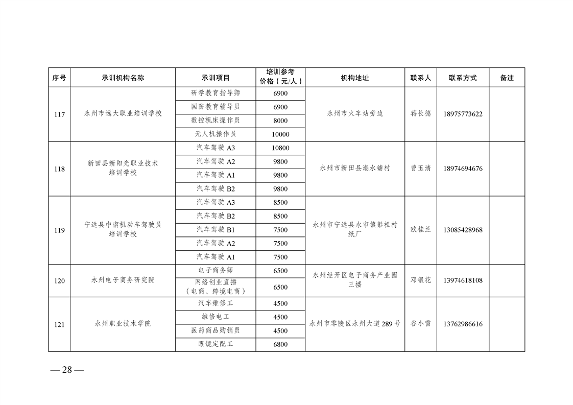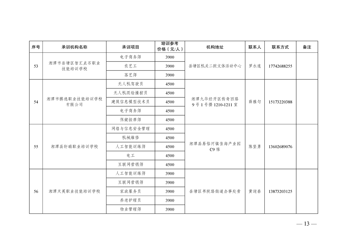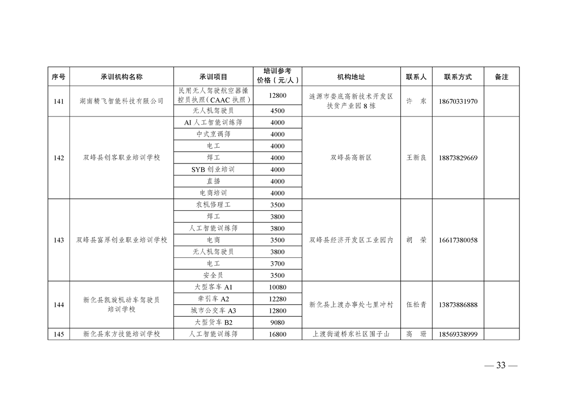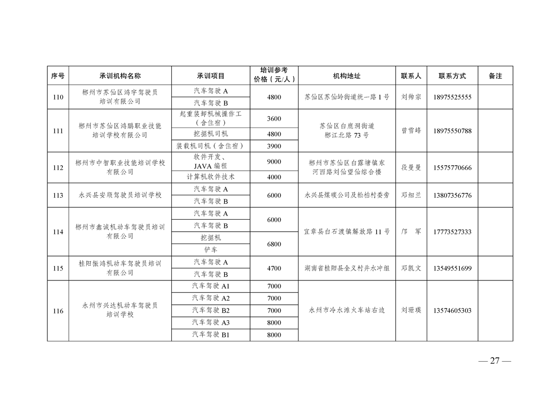 2023-2025年湖南省自主就业退役士兵职业技能培训机构名单及承训项目目录(2025版)