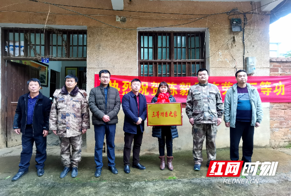 当天,一行人先后到欧小军、陈毅家中,为其家人佩戴“大红花”,颁发“三等功臣之家”牌匾及立功奖状,送去了三等功慰问金,并代表县委县政府向欧小军、陈毅家人表示感谢,感谢他们为党和人民输送了一名出色的子弟兵,为部队送去了优秀人才,为家乡赢得了荣誉。