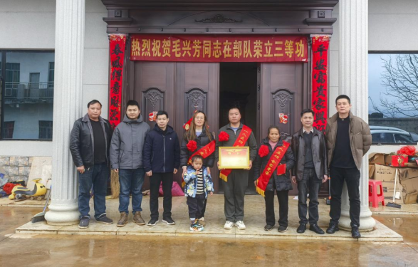 近日,江华县退役军人事务局主要负责人率相关人员组成慰问组前往大路铺镇、沱江镇,为荣获三等功的现役军人毛兴芳和兰洲及家属送去立功喜报。