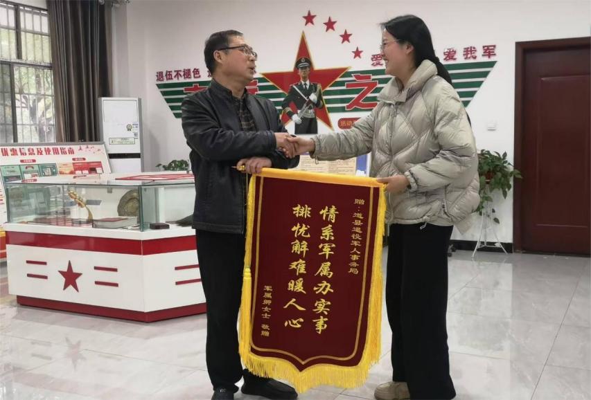 “真的是太感谢你们了,我的工作调动审批表已经盖好章,很快就能去新单位工作了。”2月24日,军属卿女士专程来到道县退役军人事务局,送上“情系军属办实事 排忧解难暖人心”锦旗,高兴地告诉该局负责人自己工作调动的最新情况。