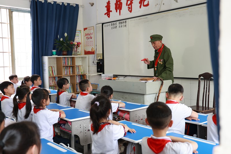 “孩子们,你们胸前的红领巾,是红旗的一角,是用烈士鲜血染红的。”在永州市冷水滩区凤凰小学三年级二班,86岁的边境作战老兵王本河在讲台上颤抖着举起红领巾,教室里60余名孩子们稚嫩的脸庞闪烁泪光。这是冷水滩区“老兵进校园·红色精神代代传”主题教育活动现场的一幕。