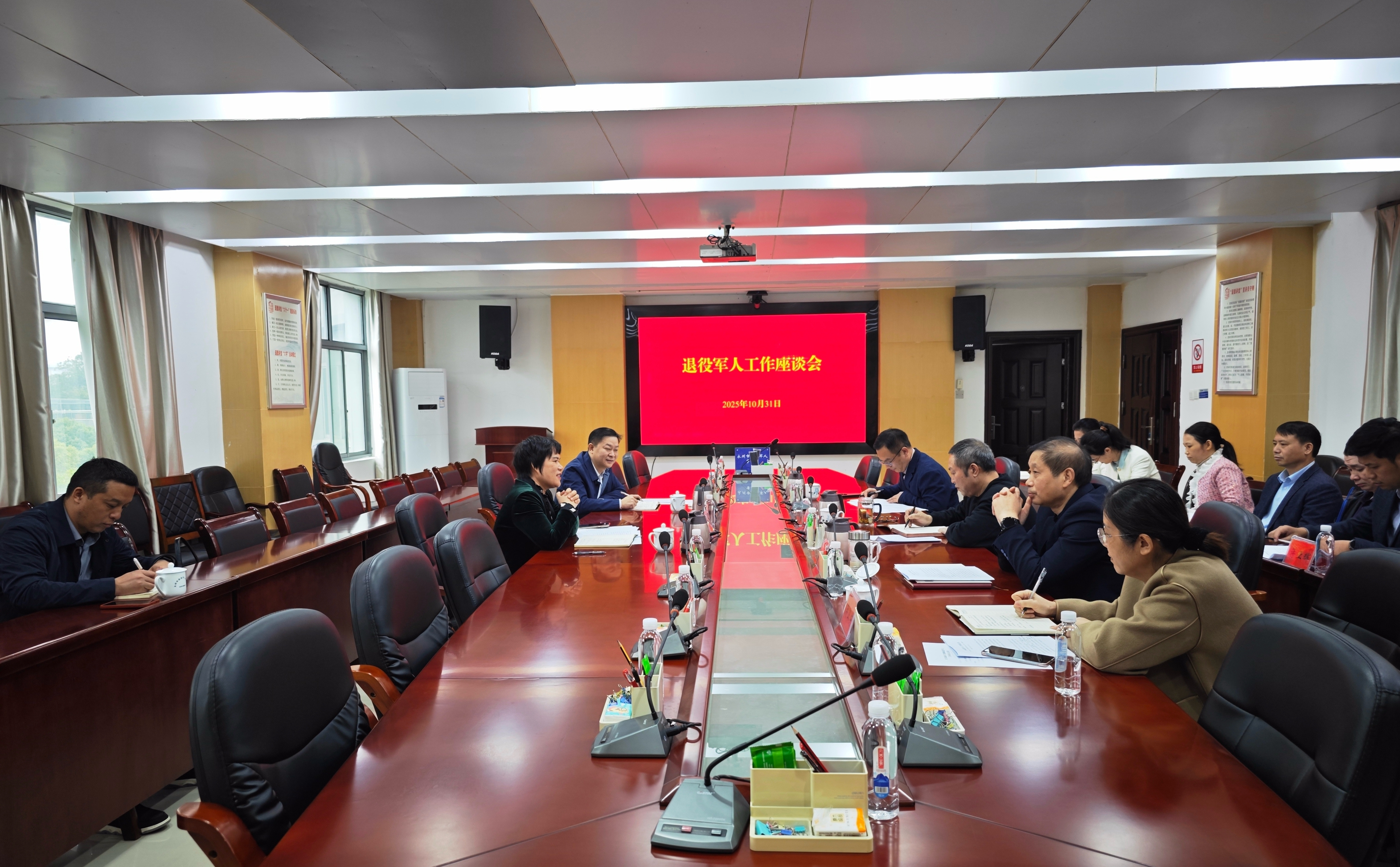 10月31日,永州市副市长龙飞凤到市退役军人事务局开展专题调研,实地察看退役军人服务中心功能区域运行情况,深入了解服务保障体系建设进展。座谈会上,市退役军人事务局就当前重点工作推进情况作了详细汇报。