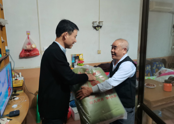 马上就要进入寒冬,雷源谷牵挂着全县烈士遗属,他用自己的退休工资,购买32套御寒被,委托退役军人事务局的同志送到烈士遗属家里。